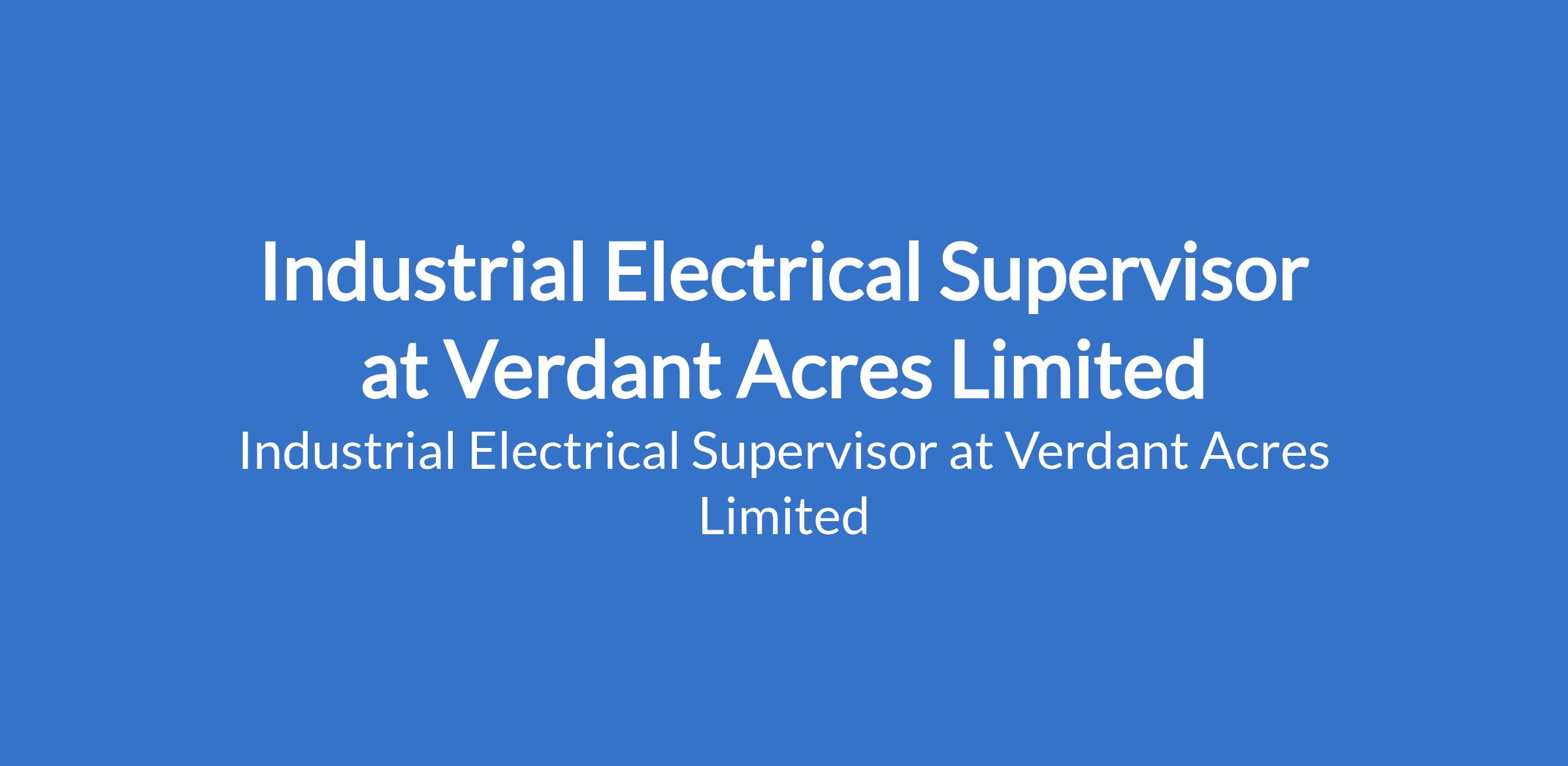 Verdant Acres Limited is recruiting to fill the position of: Industrial Electrical Supervisor. The position is located in Uyo, Akwa Ibom State. Interested candidates should possess a Degree in Electrical Engineering or a related field with at least 5 years of experience in electrical systems installation, maintenance, and repair, with at least 2 years in a supervisory role