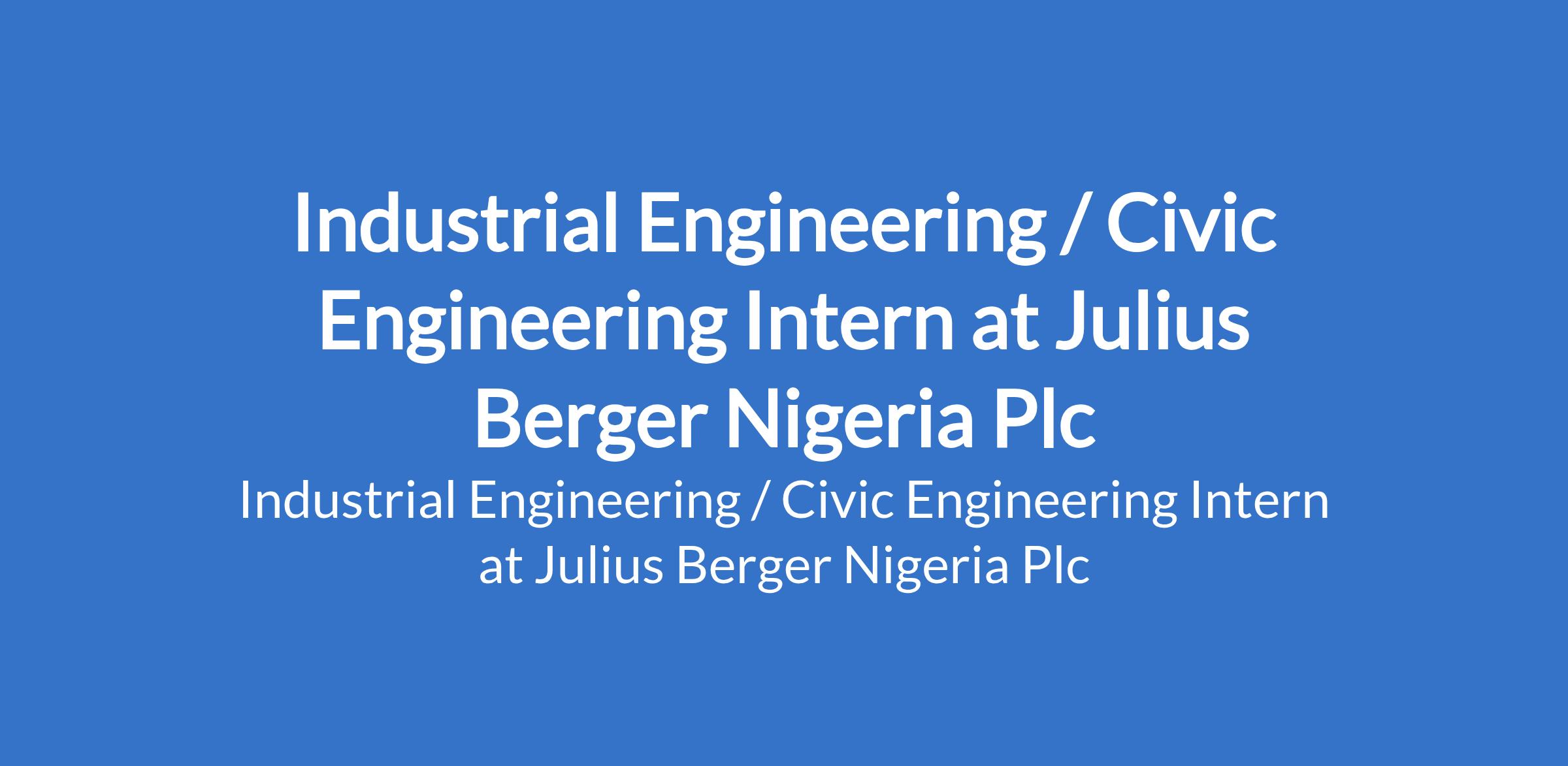 Julius Berger Nigeria Plc is recruiting to fill the position of: Industrial Engineering / Civic Engineering Intern. The position is located in Abuja (FCT). Interested candidates should possess a current study certificate with good knowledge of German and English (B2).
