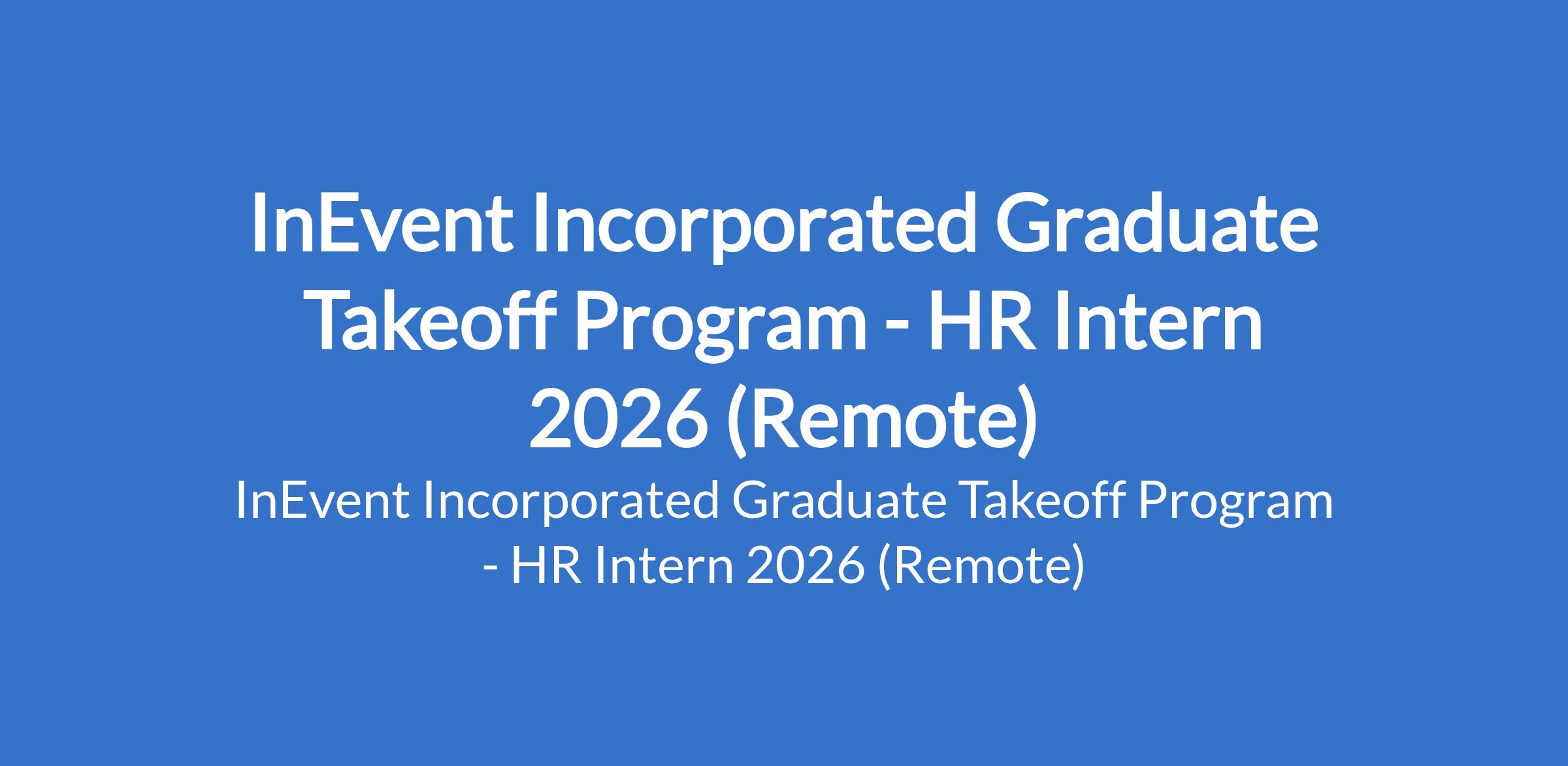 InEvent Incorporated invites applications from suitably qualified candidates for its 2026 InEvent Graduate Takeoff Program - HR Intern. The program is located in Lagos State (Remote). InEvent is launching a one-year Graduate Take-Off Program open to students and recent graduates from all around the world, which aims to provide candidates with practical training and skill development opportunities needed to identify potential areas of strength and establish a professional foothold. Successful candidates will gain hands-on experience and develop skills that are in demand in the job market while also contributing to the overall goal of our company. The fantastic part of this is that you get paid while learning and developing these skills. Interested candidates should possess relevant qualifications with 6+ months experience in HR roles, with a focus on employee relations and branding.