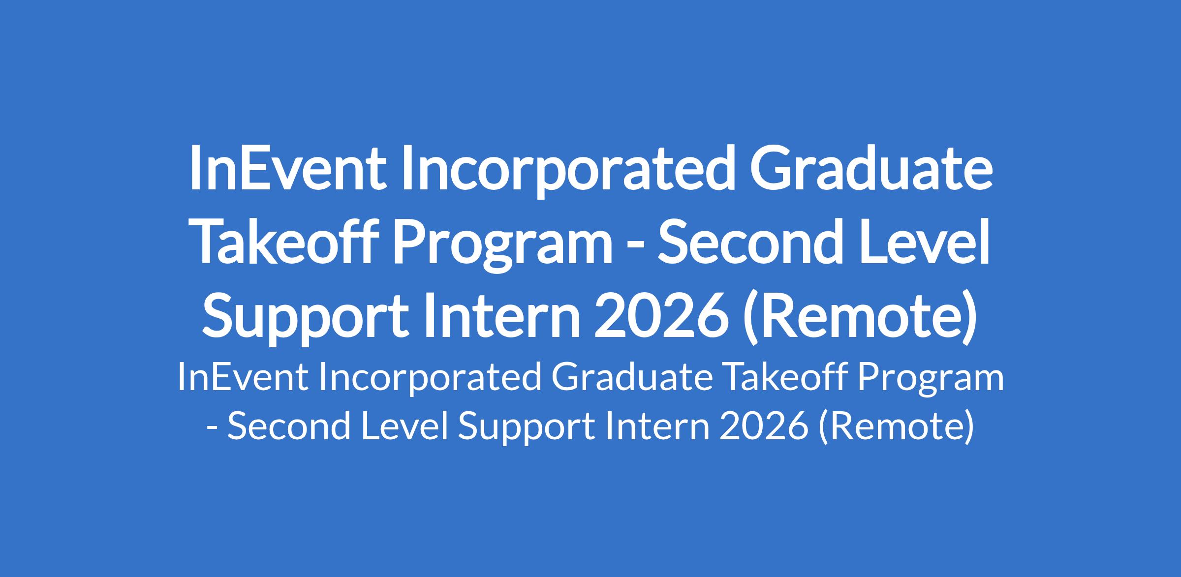 InEvent Incorporated invites applications from suitably qualified candidates for its 2026 InEvent Graduate Take-off Program - Second Level Support Intern. The program is located in Lagos State (Remote). InEvent is launching a one-year Graduate Take-Off Program open to students and recent graduates from all around the world, which aims to provide candidates with practical training and skill development opportunities needed to identify potential areas of strength and establish a professional foothold. Successful candidates will gain hands-on experience and develop skills that are in demand in the job market while also contributing to the overall goal of our company. The fantastic part of this is that you get paid while learning and developing these skills.Interested candidates should possess relevant qualifications with 6+ months experience in similar position.