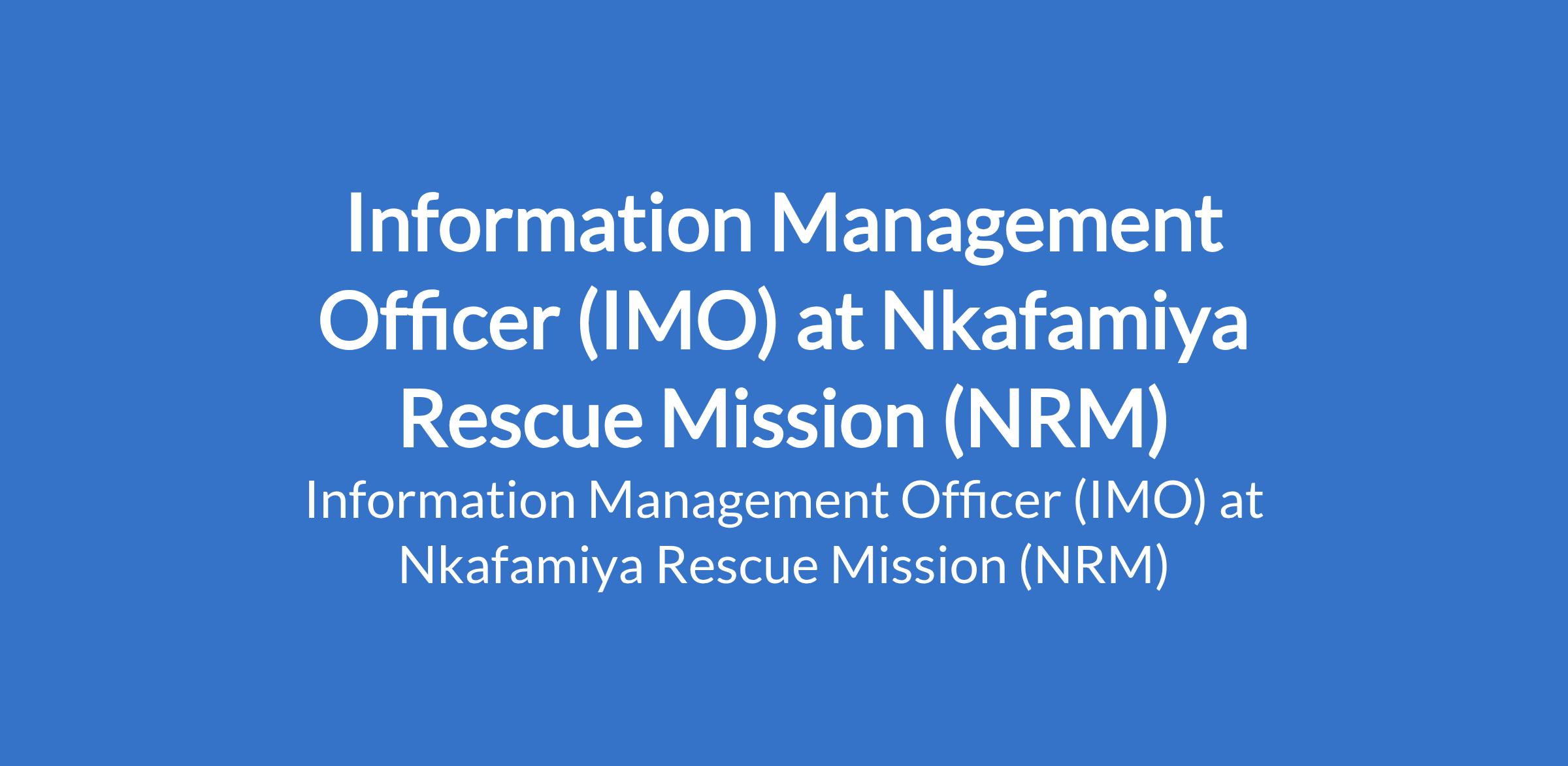 Nkafamiya Rescue Mission (NRM) is recruiting to fill the position of: Information Management Officer (IMO). The position is located in Borno State. Interested candidates should possess relevant qualifications with demonstrable experience in humanitarian or development programs, excellent communication and teamwork skills, and a commitment to community empowerment and protection principles.