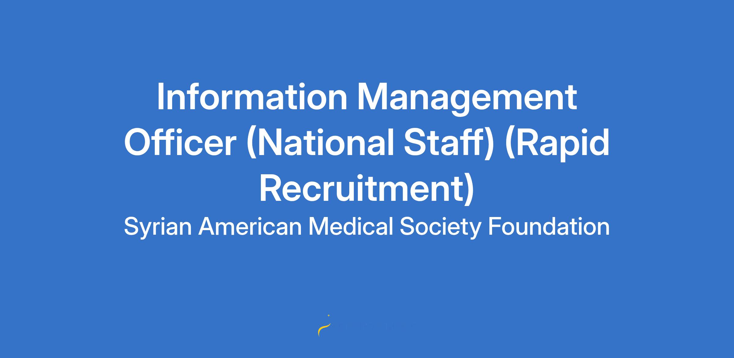 Position: Information Management Officer (National Staff) (Rapid Recruitment)