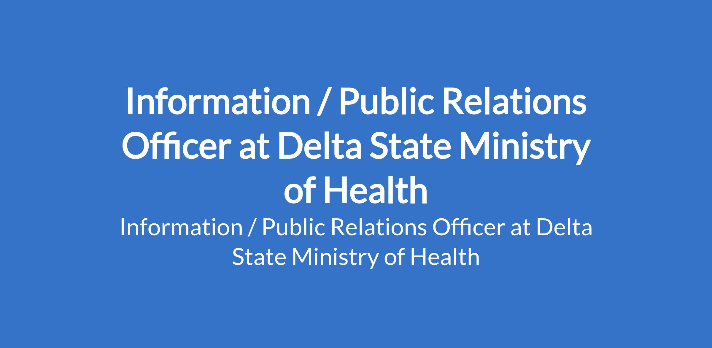 Information / Public Relations Officer at Delta State Ministry of Health