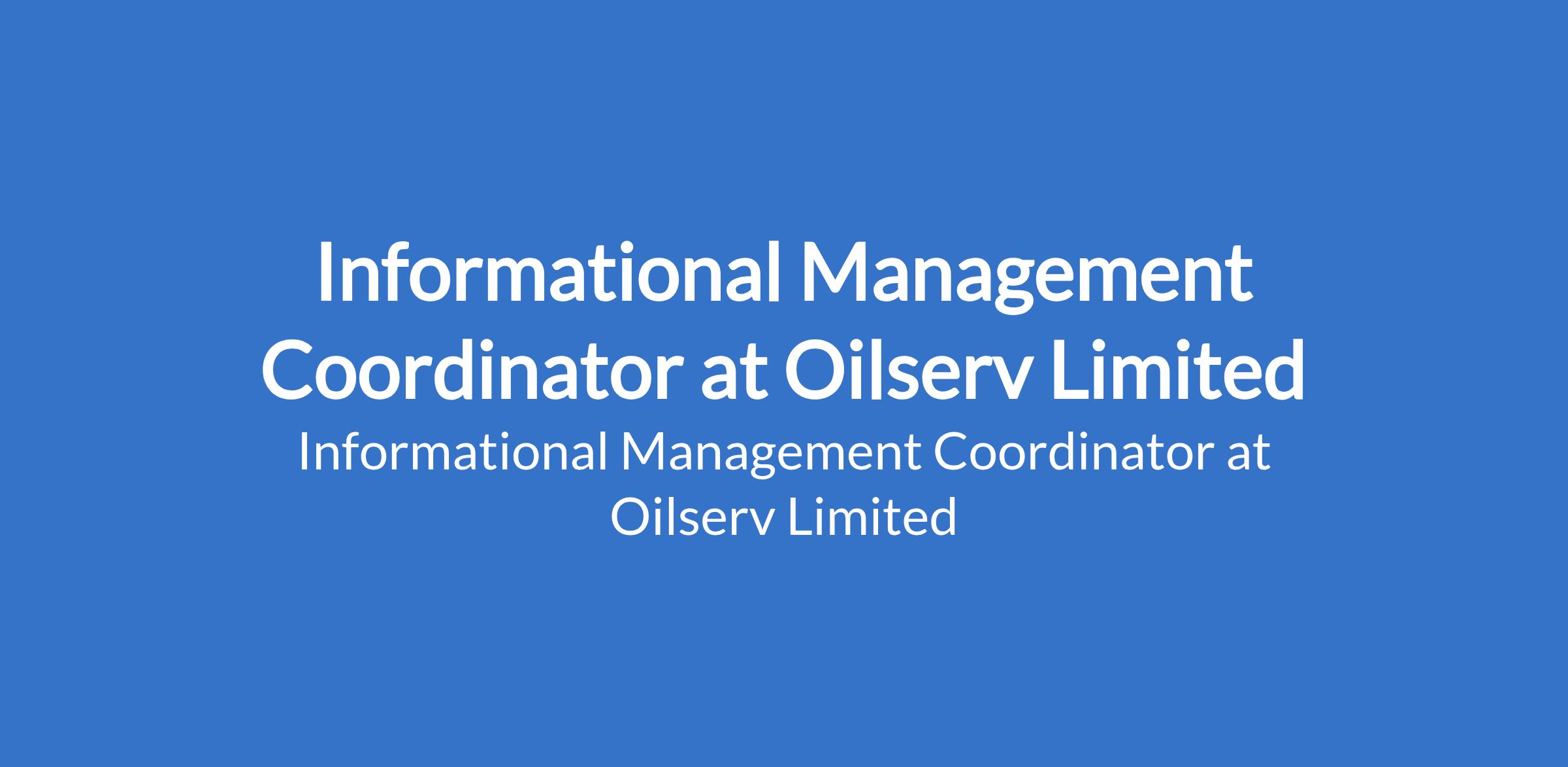 Oilserv Limited is recruiting to fill the position of: Informational Management Coordinator. The position is located in Rivers State. Interested candidates should possess a Bachelors Degree in Physic Electronics Technology with a minimum of 5 years in ICT, with at least 2 years in a supervisory role.