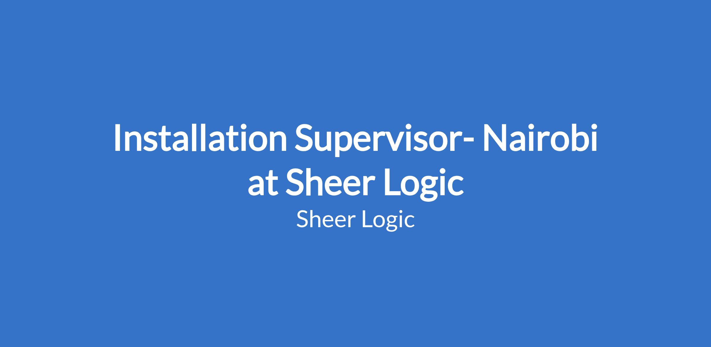 Installation Supervisor- Nairobi at Sheer Logic