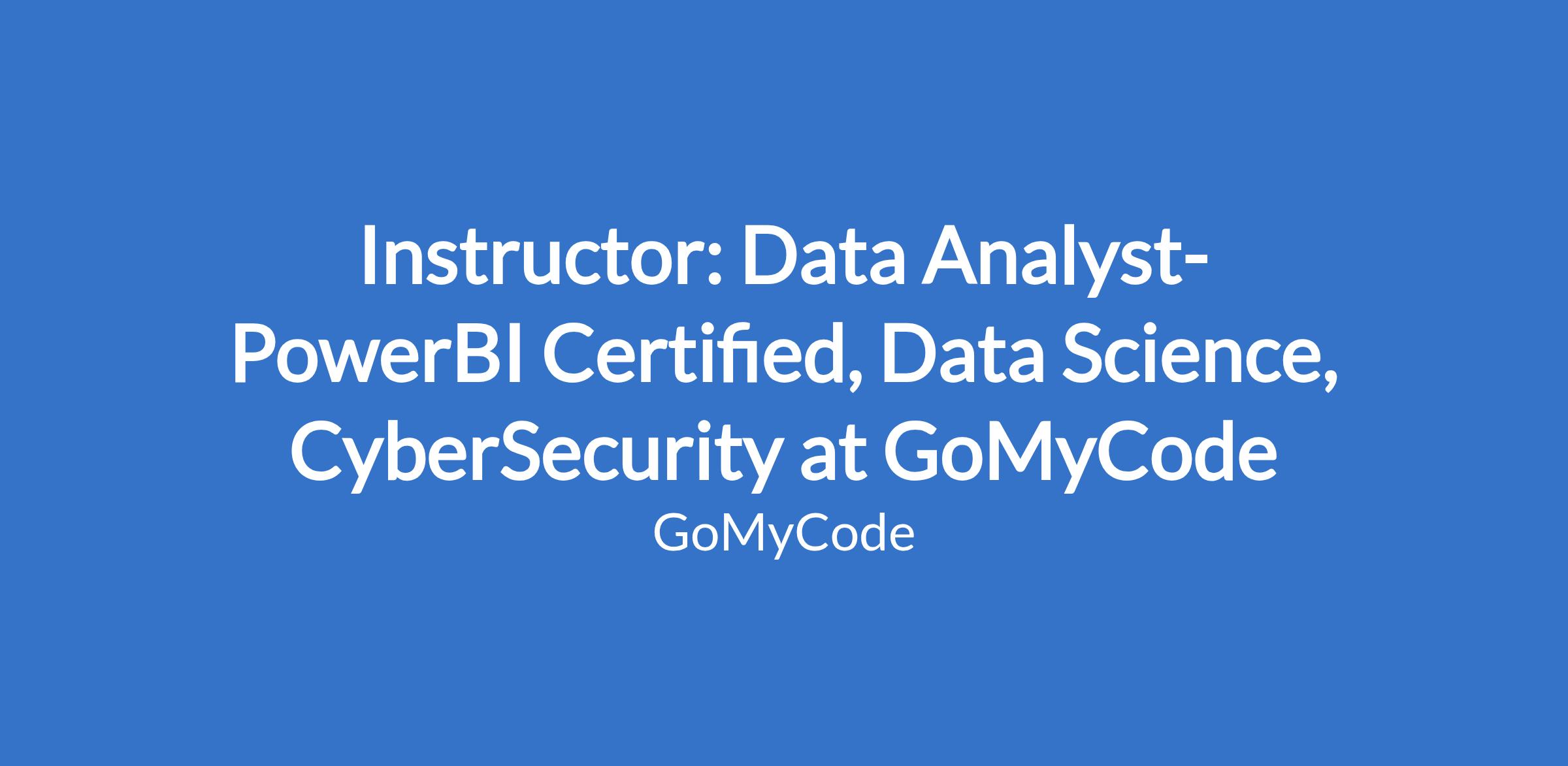 Instructor: Data Analyst-PowerBI Certified, Data Science, CyberSecurity at GoMyCode