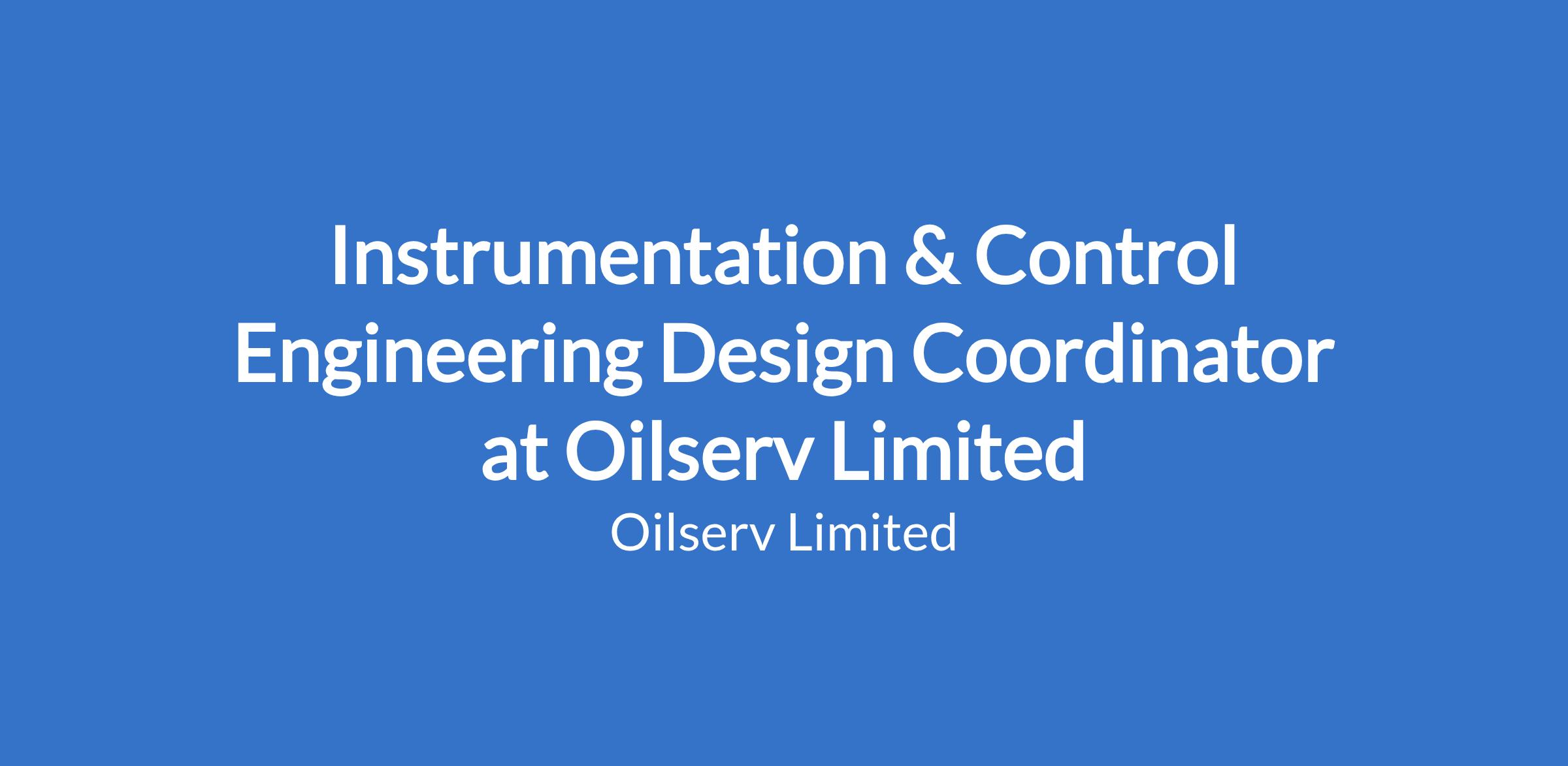 Instrumentation & Control Engineering Design Coordinator at Oilserv Limited