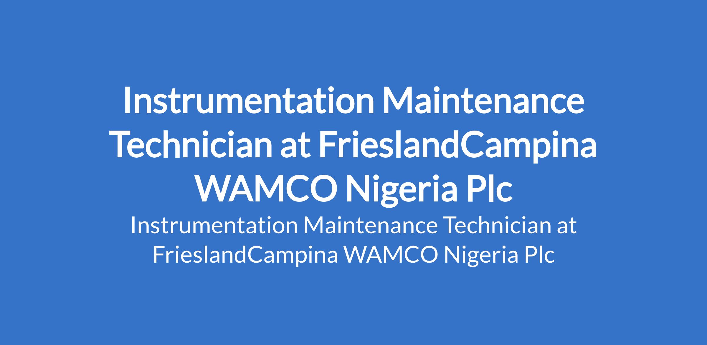 FrieslandCampina WAMCO Nigeria Plc is recruiting to fill the position of: Instrumentation Maintenance Technician. Interested candidates should possess a minimum of OND / HND / BSc in Electrical / Electronics Engineering, Mechatronics, Robotics Engineering with a minimum of 2 years experience in similar role.