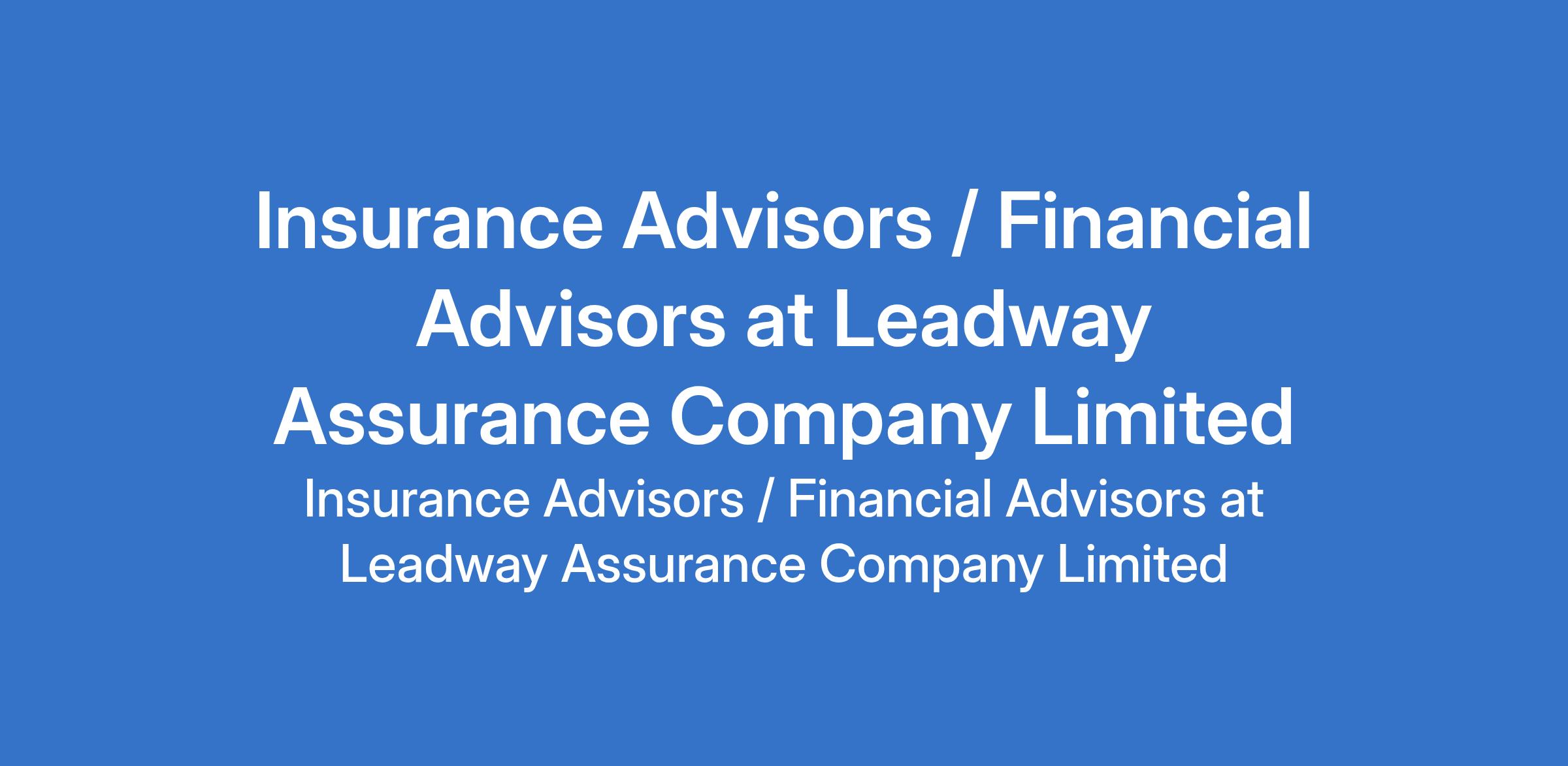 Insurance Advisors / Financial Advisors at Leadway Assurance Company Limited