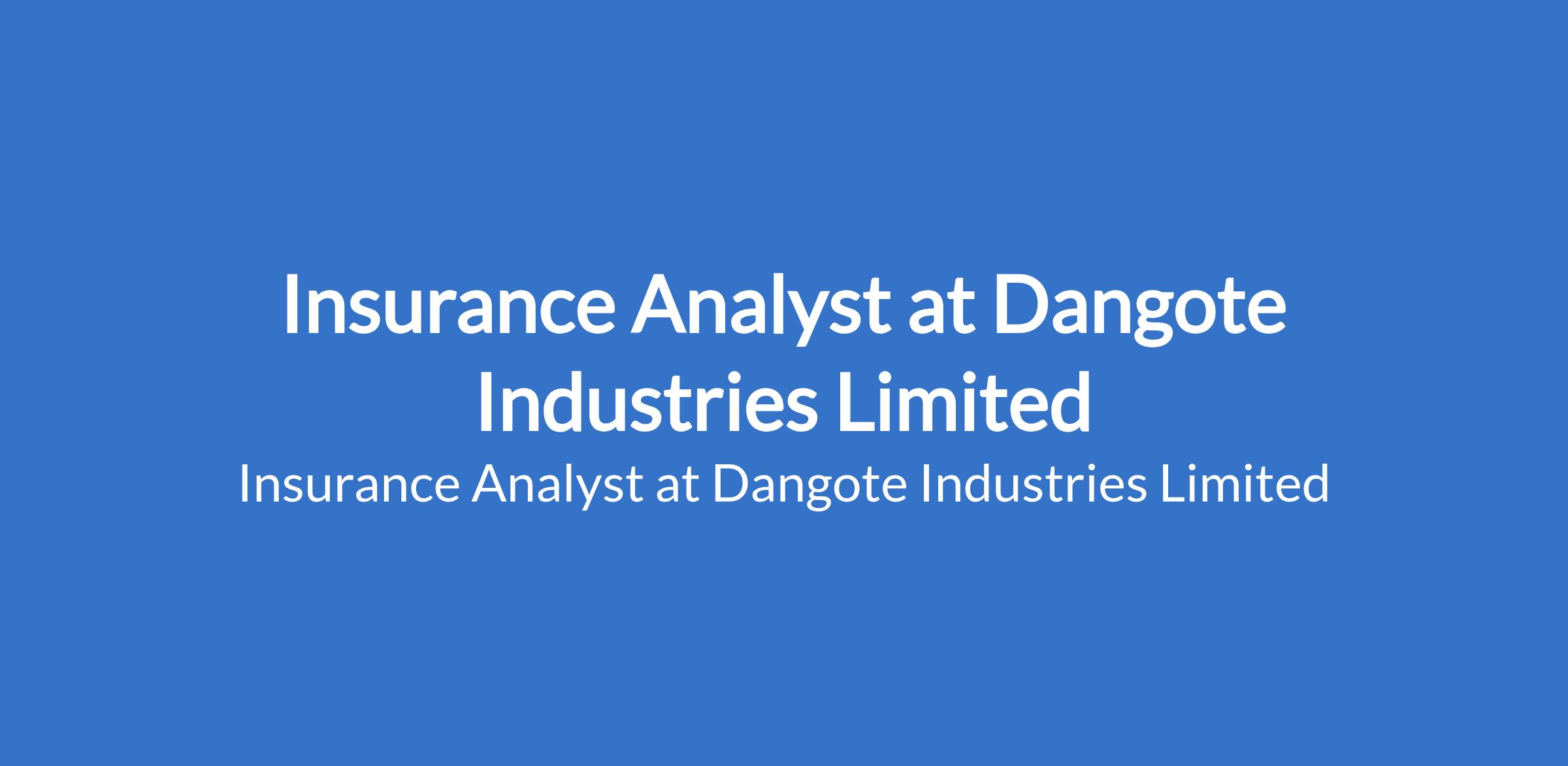 Dangote Industries Limited is recruiting to fill the position of: Insurance Analyst. The position is located in Lagos State. Interested candidates should possess a BSc / HND qualification in Insurance related field with 2 - 3 years experience in an insurance or insurance broking firm.