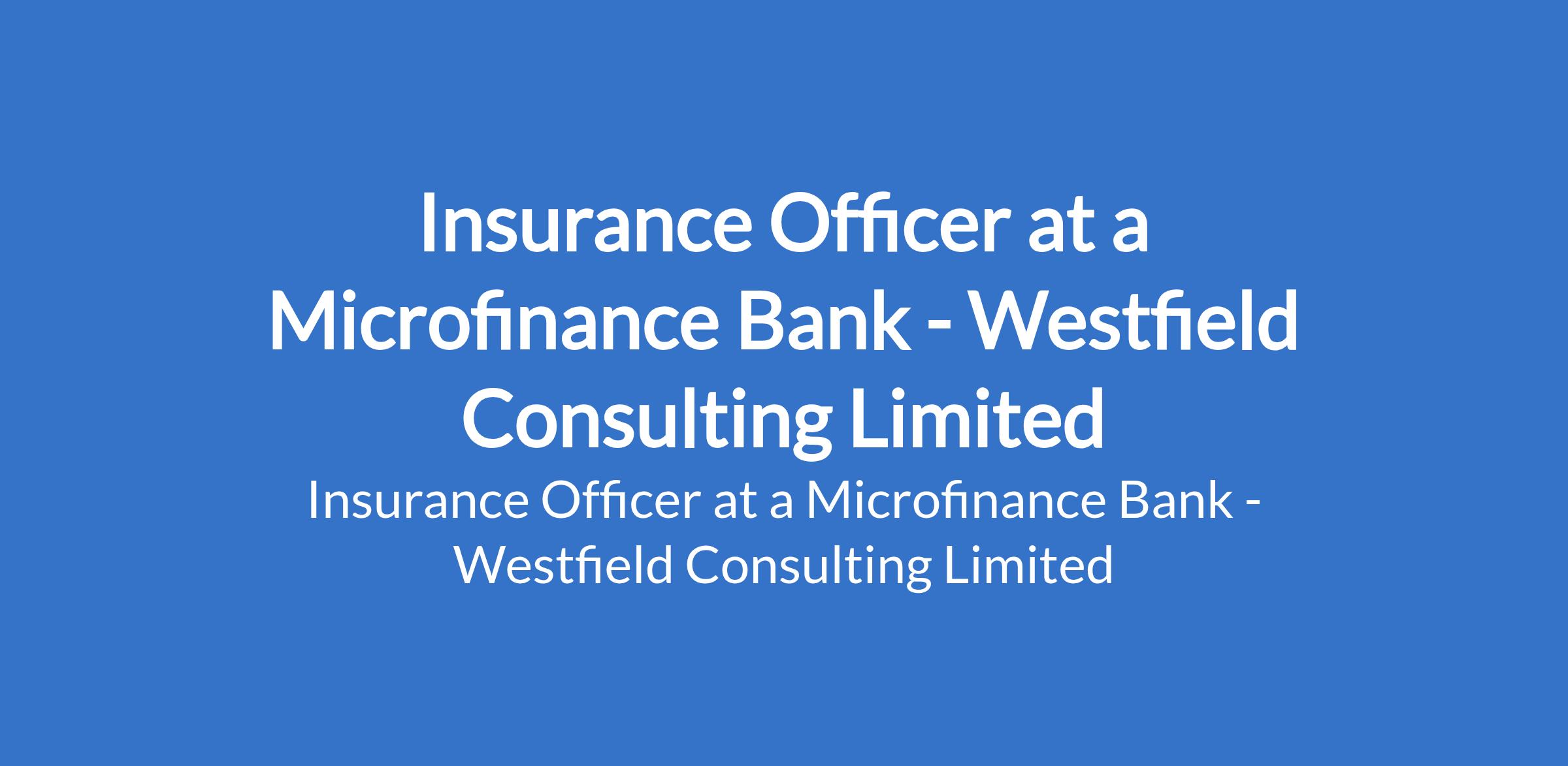 Westfield Consulting Limited - our client in the Microfinance Banking space is recruiting to fill the position of: Insurance Officer. The position is located in Ikeja, Lagos State. Interested candidates should possess a Bachelor's Degree in Insurance, Finance, or related field with 13 years relevant experience(as required).
