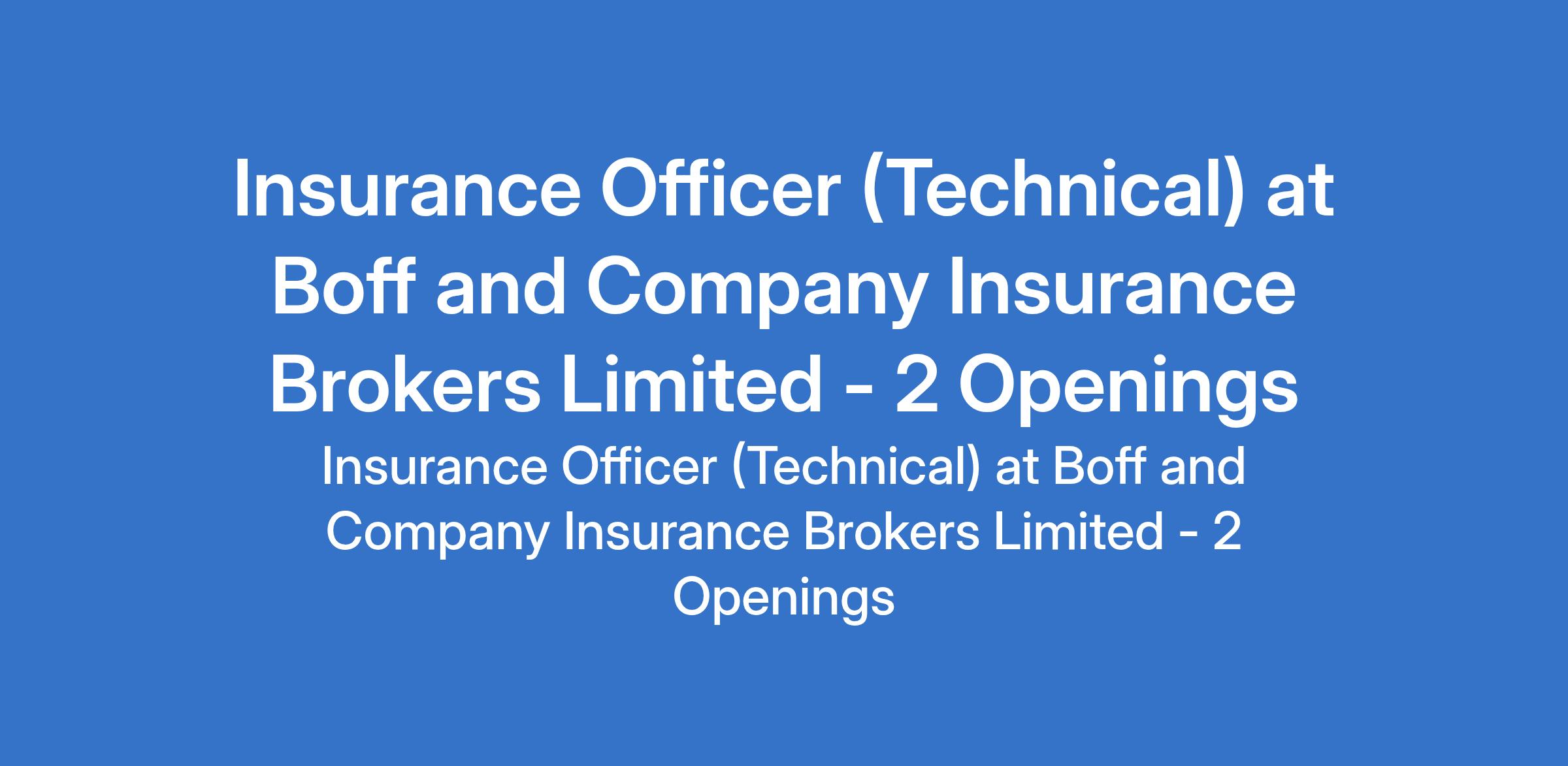 Boff and Company Insurance Brokers Limited is recruiting to fill the position of: Insurance Officer (Technical). The position is located in Abuja (FCT) and Port Harcourt, Rivers State. Salary: N250,000 - N600,000 per month. Interested candidates should possess a BSc or HND (2:1 or First class) with 2 - 5 years industry experience.
