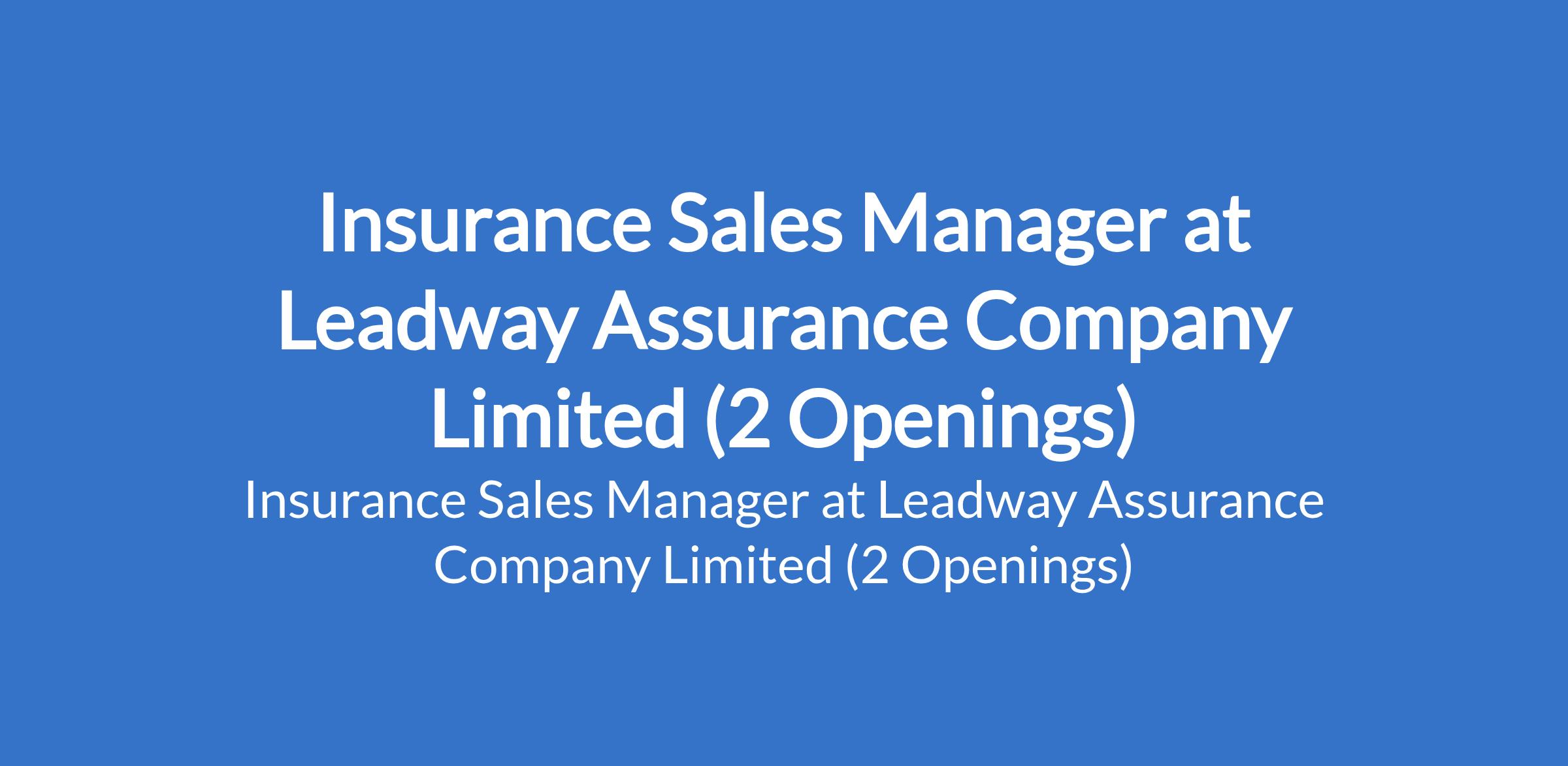 Leadway Assurance Company Limited is recruiting to fill the position of: Insurance Sales Manager. The position is located in Ikeja and Ikorodu - Lagos State. Salary: N 250,000 - N300,000 per month. Interested candidates should possess an HND, B.Sc Degree and its equivalent with 10 years experience.