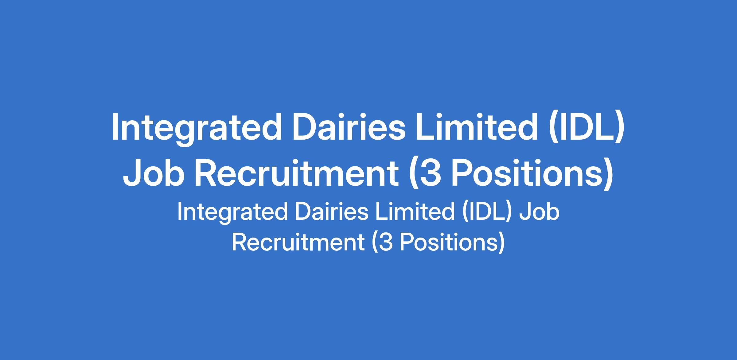 Integrated Dairies Limited (IDL) Job Recruitment (3 Positions)