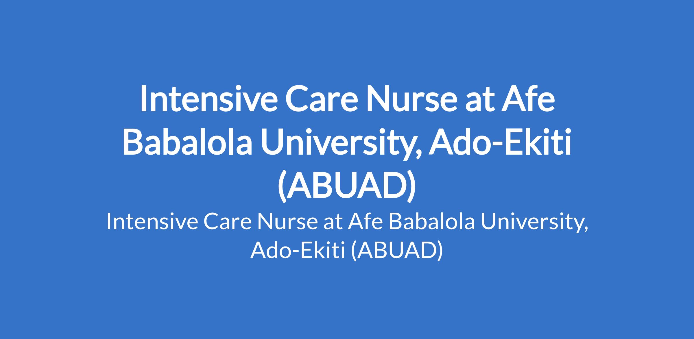 Afe Babalola University, Ado-Ekiti (ABUAD) is recruiting to fill the position of: Intensive Care Nurse. The position is located in Ekiti State. Interested candidates should possess possess a Bachelor of Nursing Science (B.NSc.) Not less than Second Class Lower Division; Possession of National Youth Service Certificate is mandatory.