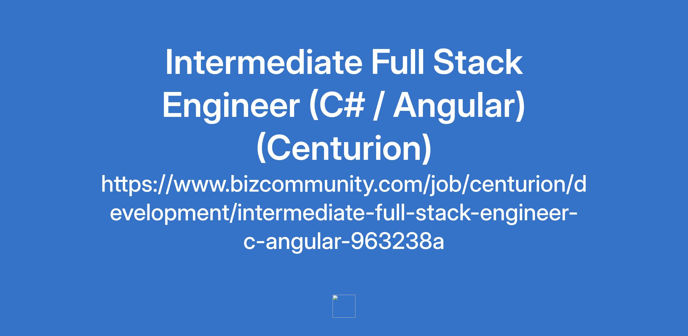 Intermediate Full Stack Engineer (C# / Angular) (Centurion)