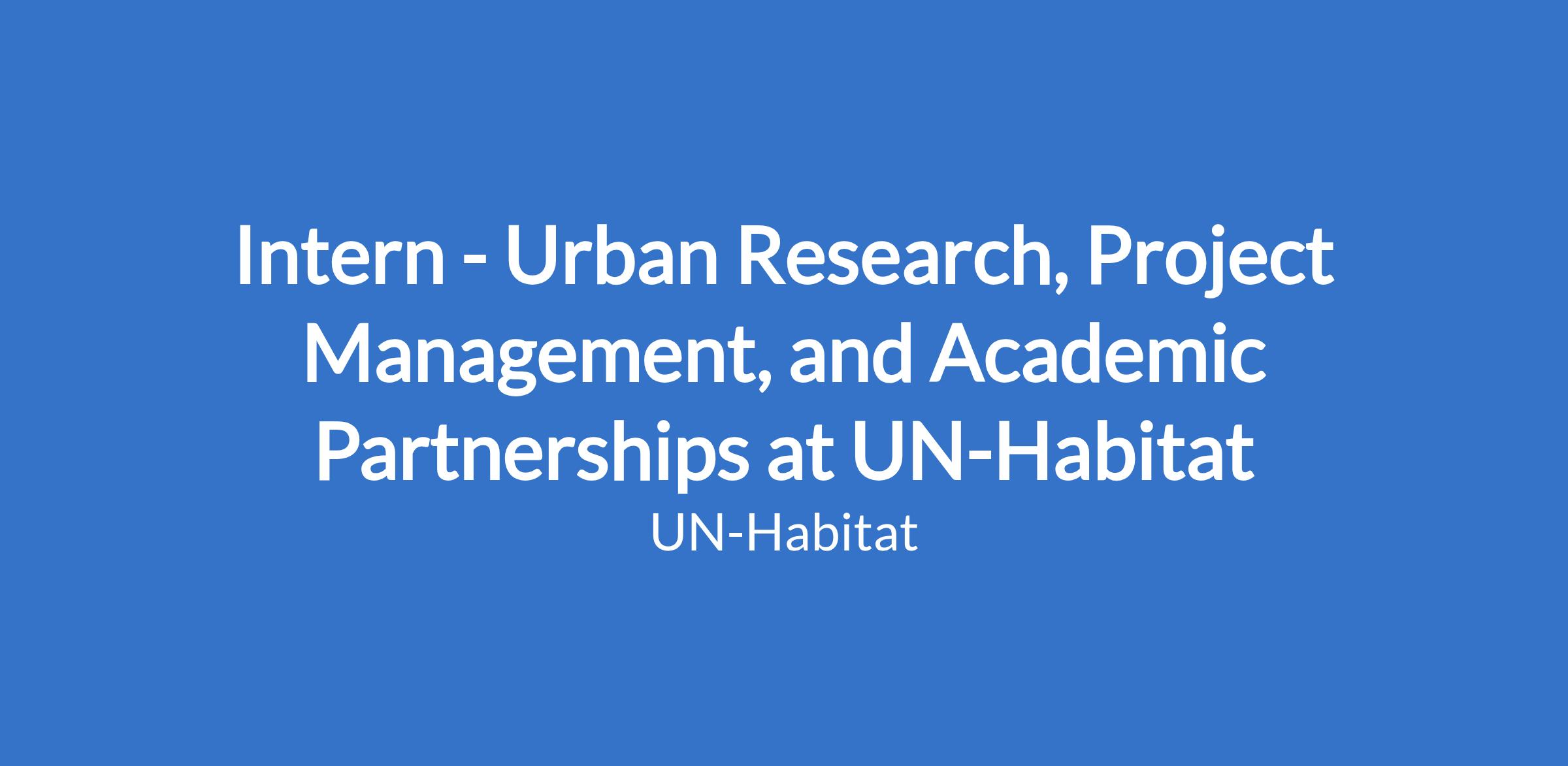 Intern - Urban Research, Project Management, and Academic Partnerships at UN-Habitat