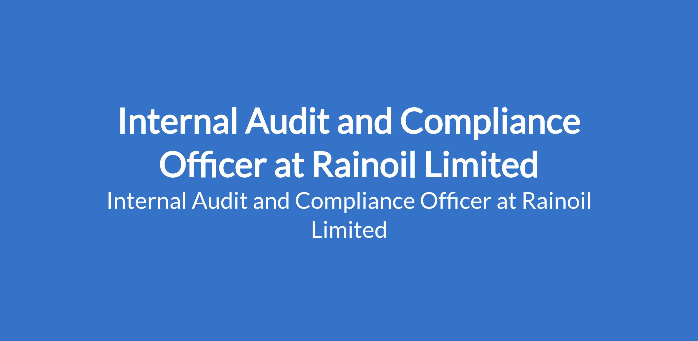 Rainoil Limited is recruiting to fill the position of: Internal Audit and Compliance Officer. Interested candidates should possess a First Degree in Accounting / Economics / Banking and Finance with a minimum of 5 years experience in Internal Audit/Control or Risk & Compliance from Oil & Gas/Banking or FMCG.