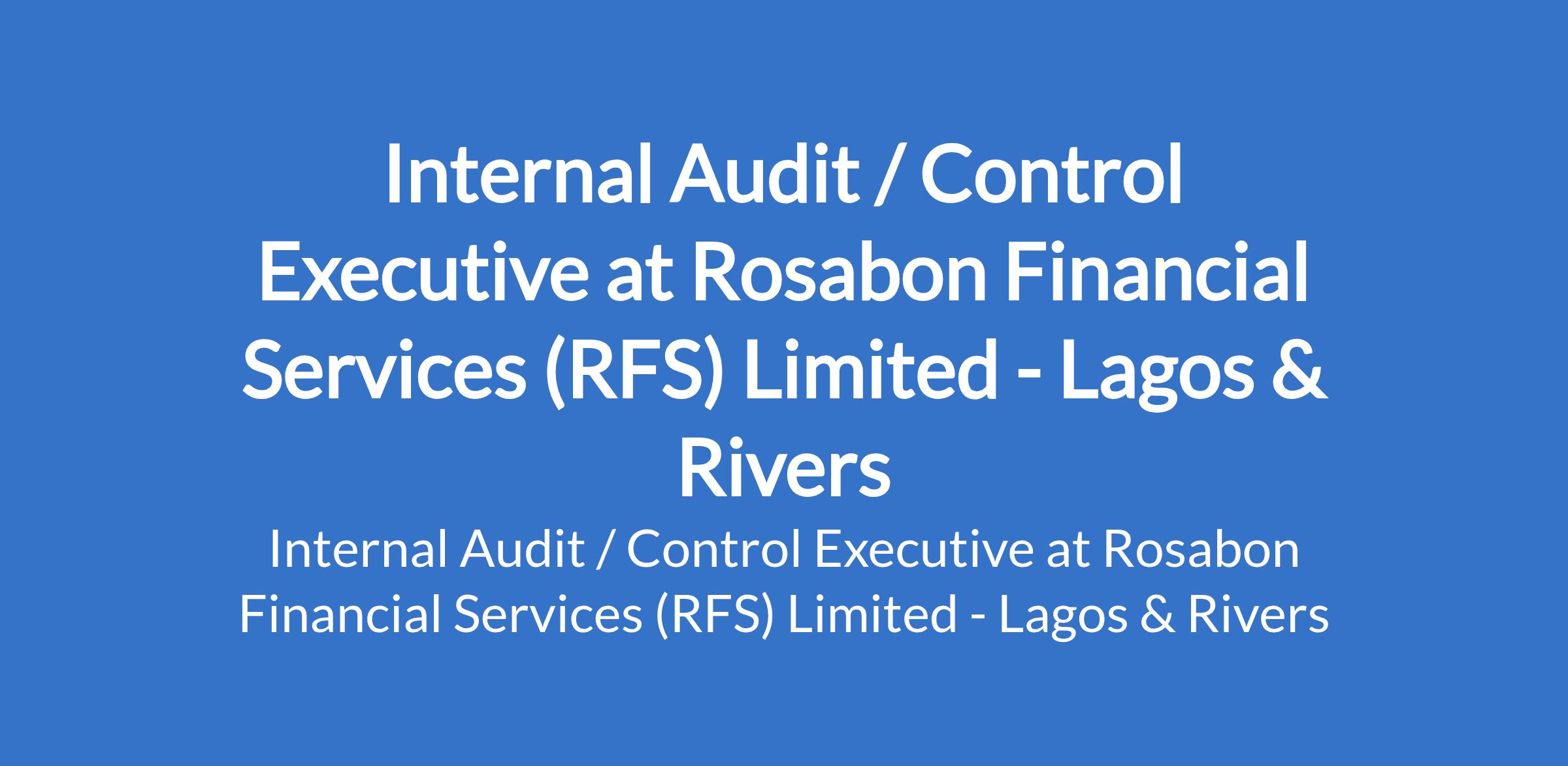 Rosabon Financial Services (RFS) Limited is recruiting to fill the position of: Internal Audit / Control Executive. The position is located in Lagos and Rivers States. Interested candidates should possess a University Degree in Accounting or Finance and ICAN/ACCA certification (or in view).