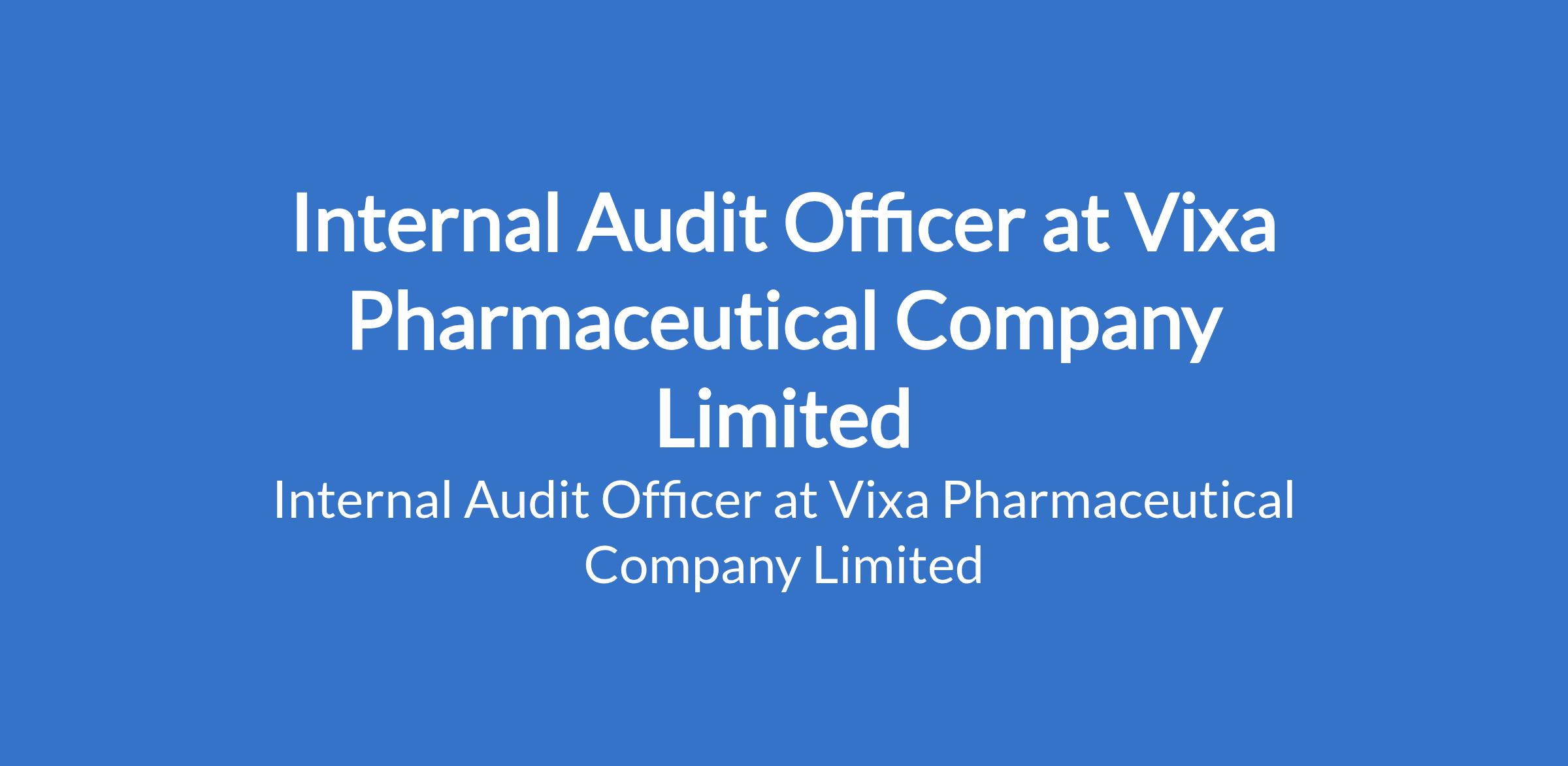 Vixa Pharmaceutical Company Limited is recruiting to fill the position of: Internal Audit Officer. The position is located in Lagos State. Interested candidates should possess a Bachelor's Degree in Accounting, Finance, Business Administration, or related fields; sn Advanced Degree or professional certification (e.g., CPA, CIA, CISA) is preferred; with proven experience (3 years) in internal auditing, external auditing, or risk management, preferably in a regulated industry or public accounting firm.