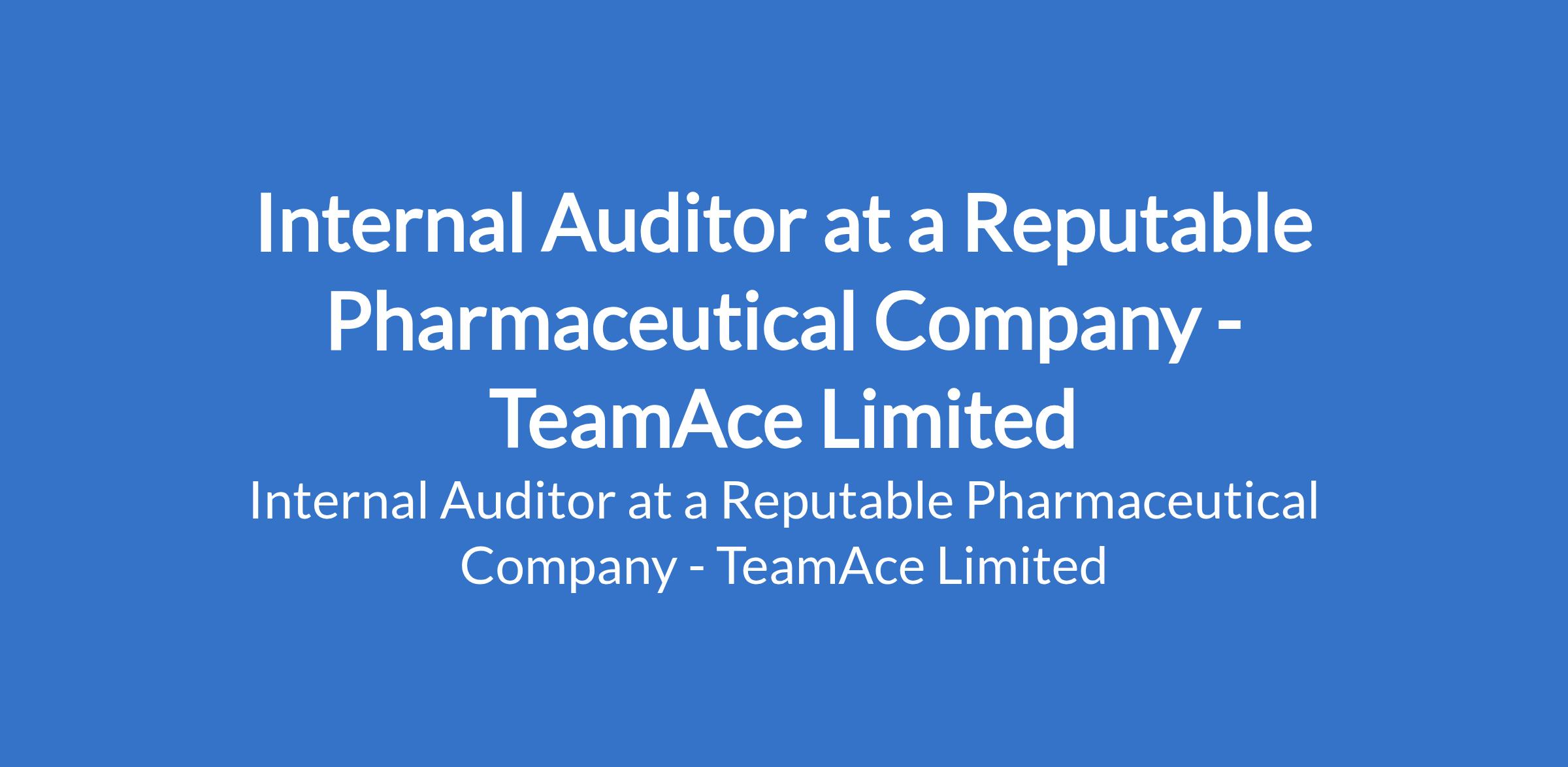 TeamAce Limited - Our client, a reputable organization in the Pharmaceutical sector, is recruiting to fill the position of: Internal Auditor. The position is located in Ajah, Lagos State. Interested candidates should possess a Bachelors Degree in Accounting, Finance, or related field with 35 years of experience in internal audit, preferably within pharmaceutical or regulated industries; professional certification such as ICAN, ACCA, or CIA is an advantage.