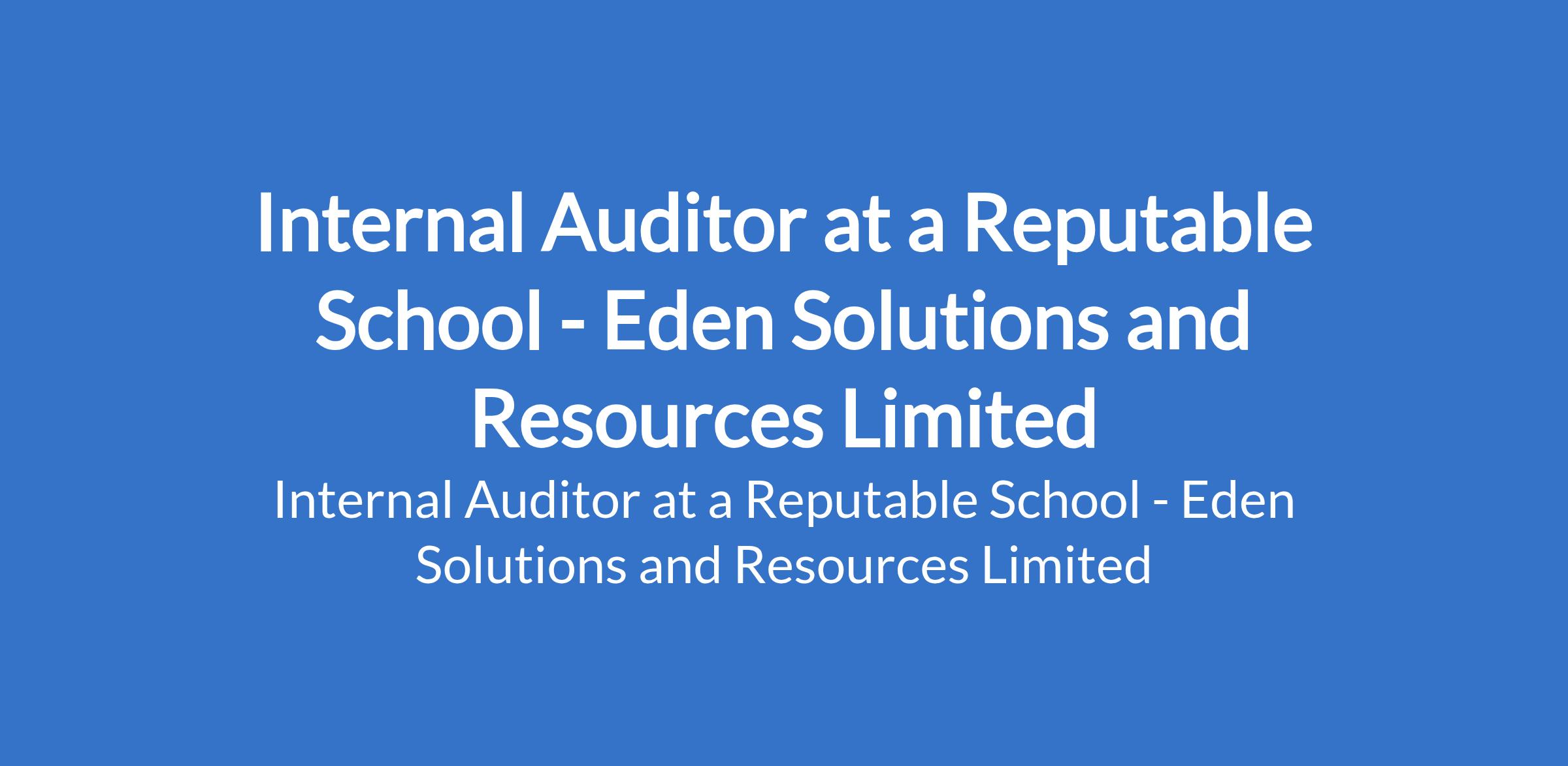 Eden Solutions and Resources - Our client, a reputable School is recruiting to fill the position of: Internal Auditor. The position is located in Abuja (FCT). Interested candidates should possess a Bachelors Degree in Accounting, Finance, Business Administration, or a related field with 3 - 5 years of relevant auditing or accounting experience.