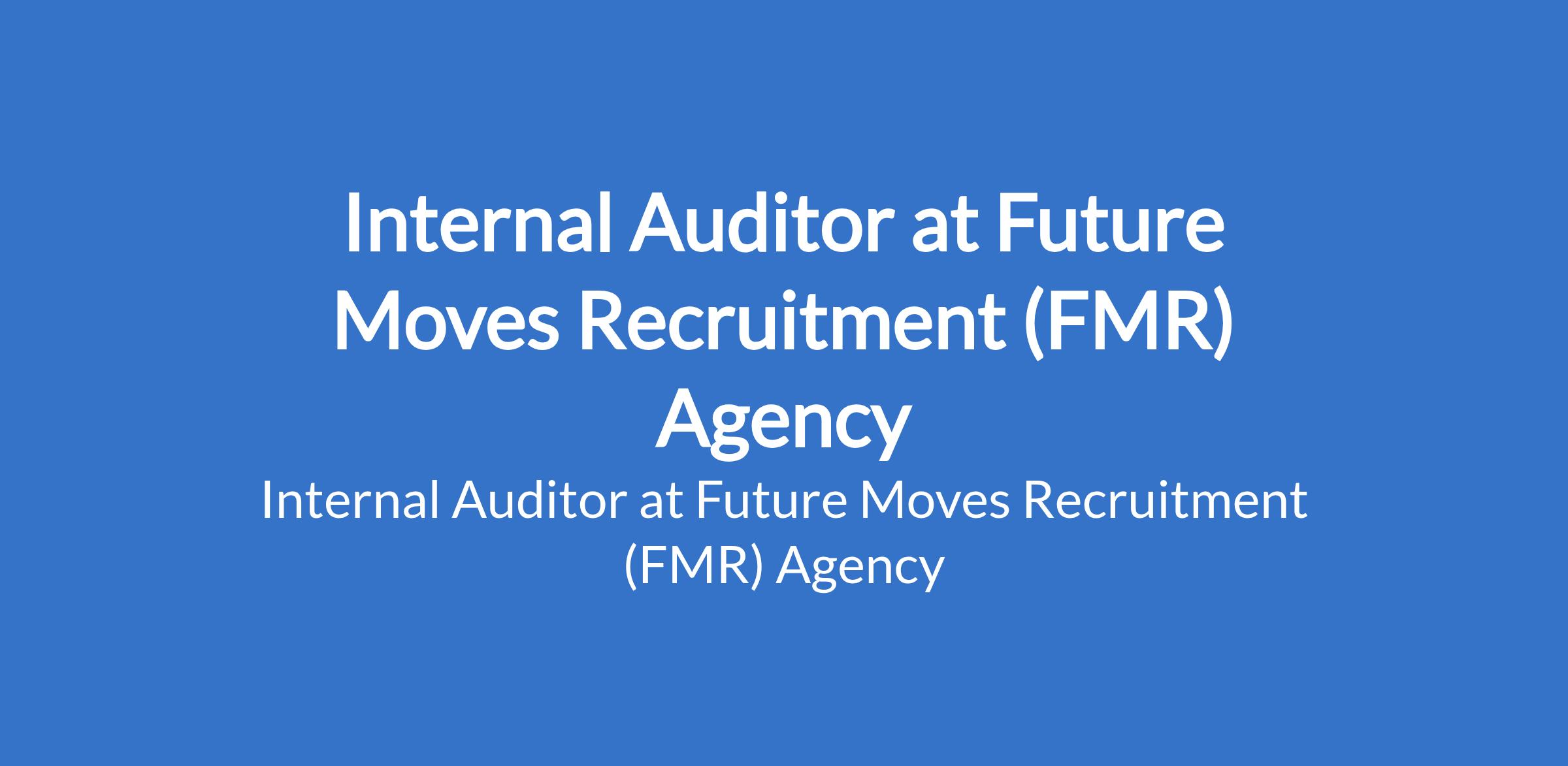 Future Moves Recruitment (FMR) Agency is recruiting to fill the position of: Internal Auditor. The position is located in Masha, Surulere - Lagos State. Interested candidates should possess a Bachelors Degree in Accounting, Finance, Business Administration, or a related discipline with 24 years experience in Internal Audit, preferably within a manufacturing or FMCG environment.