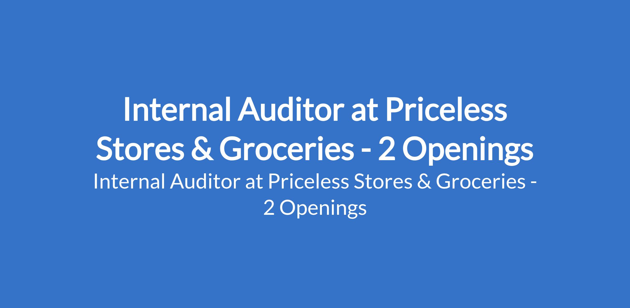 Priceless Stores & Groceries is recruiting to fill the position of: Internal Auditor. The position is located in Owerri - Imo and Enugu States. Interested candidates should possess an HND / Bachelor`s Degree with 2 - 4 years experience in retail or supermarket or FMCG in internal auditing
