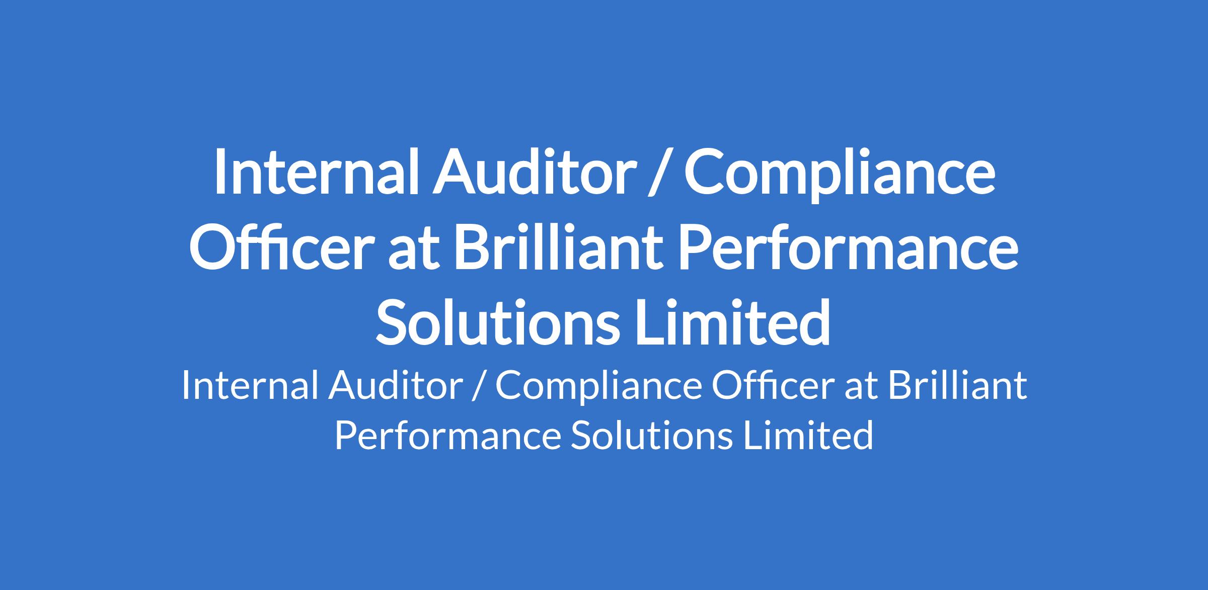 Brilliant Performance Solutions Limited - Our client is recruiting to fill the position of: Internal Auditor / Compliance Officer. The position is located in Ipaja, Lagos State. Interested candidates should possess an HND / B.Sc Degree with 6 - 8 years work experience.