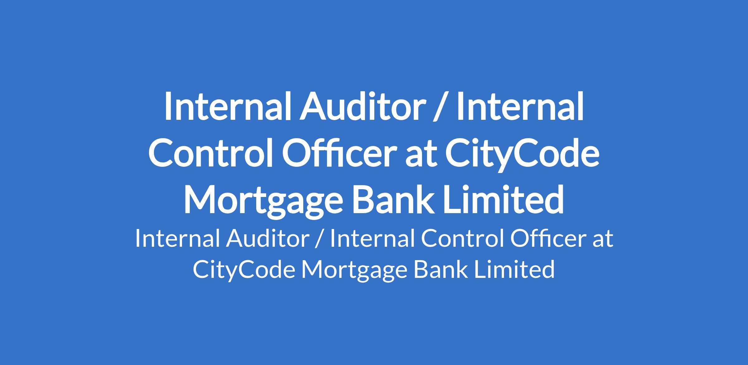 CityCode Mortgage Bank Limited is recruiting to fill the position of: Internal Auditor / Internal Control Officer. The position is located in Lagos State. Interested candidates should possess a Bachelors Degree in Accounting, Finance, Economics, or a related field with 35+ years of experience in internal audit, risk management, or internal control. Professional certification such as ACA, ACCA, CIA, or CISA is highly preferred.