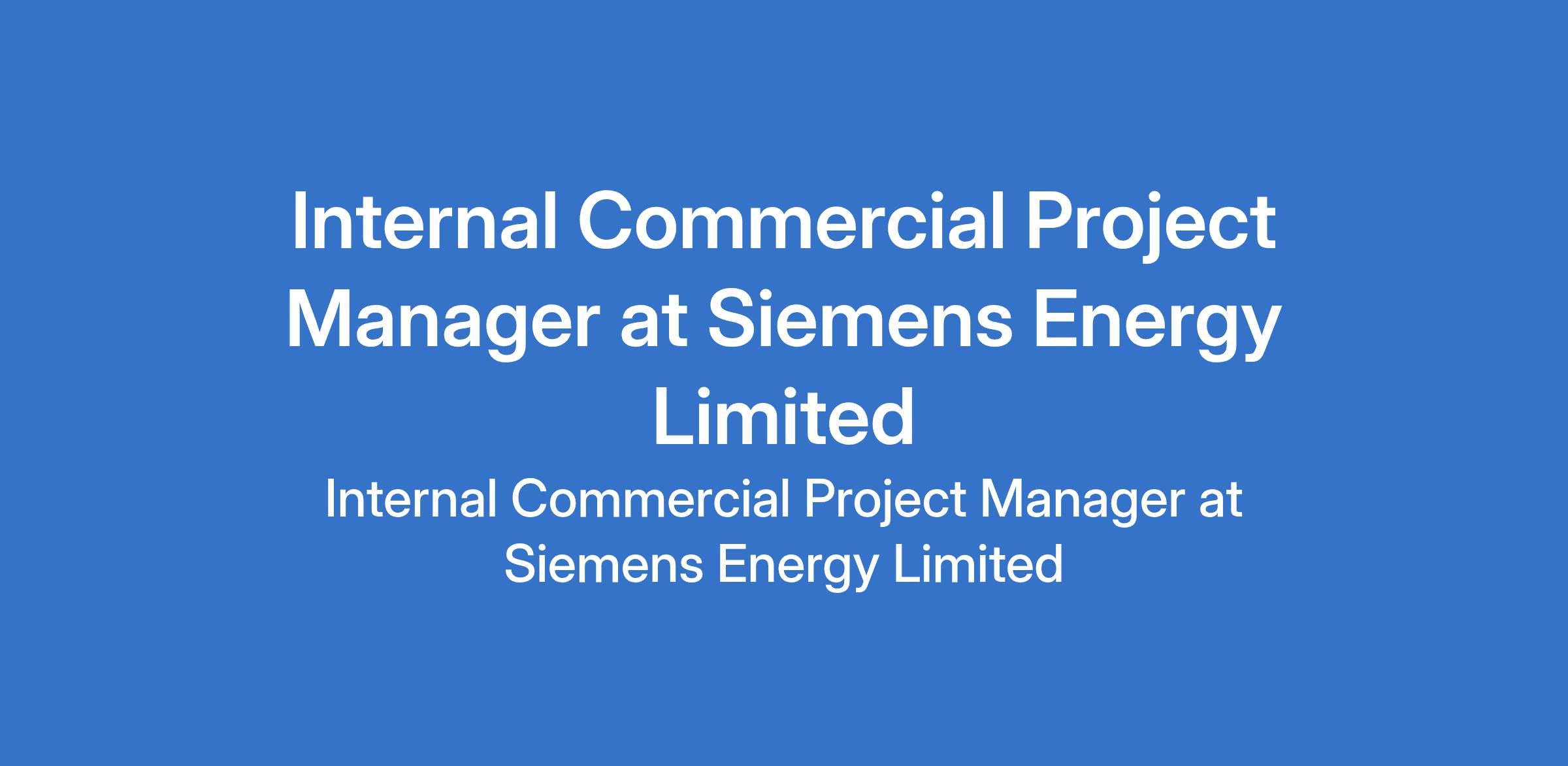 Siemens Energy Limited is recruiting to fill the position of: Internal Commercial Project Manager. The position is located in Port Harcourt, Rivers State. Interested candidates should possess a Bachelors Degree in Finance, Business Administration, Accounting or equivalent experience with 5+ years of professional experience in Business Administration or in Finance, preferably with experience in Project Execution.
