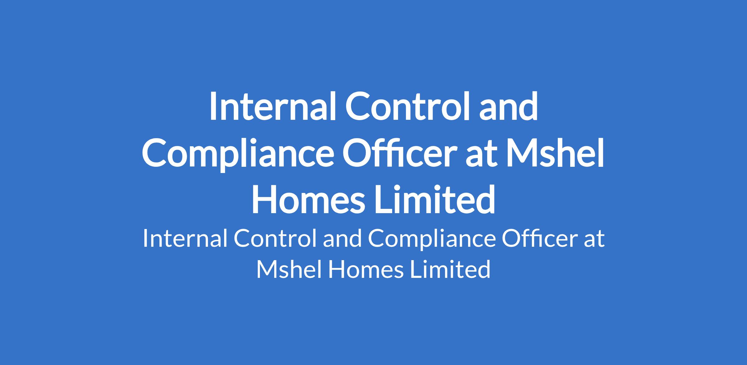 Mshel Homes Limited is recruiting to fill the position of: Internal Control and Compliance Officer. The position is located in Lagos State. Interested candidates should possess a Bachelor's Degree in Accounting, Finance, Business Administration, or a related field with 3-5 years experience in internal control, risk management, audit, or compliance.