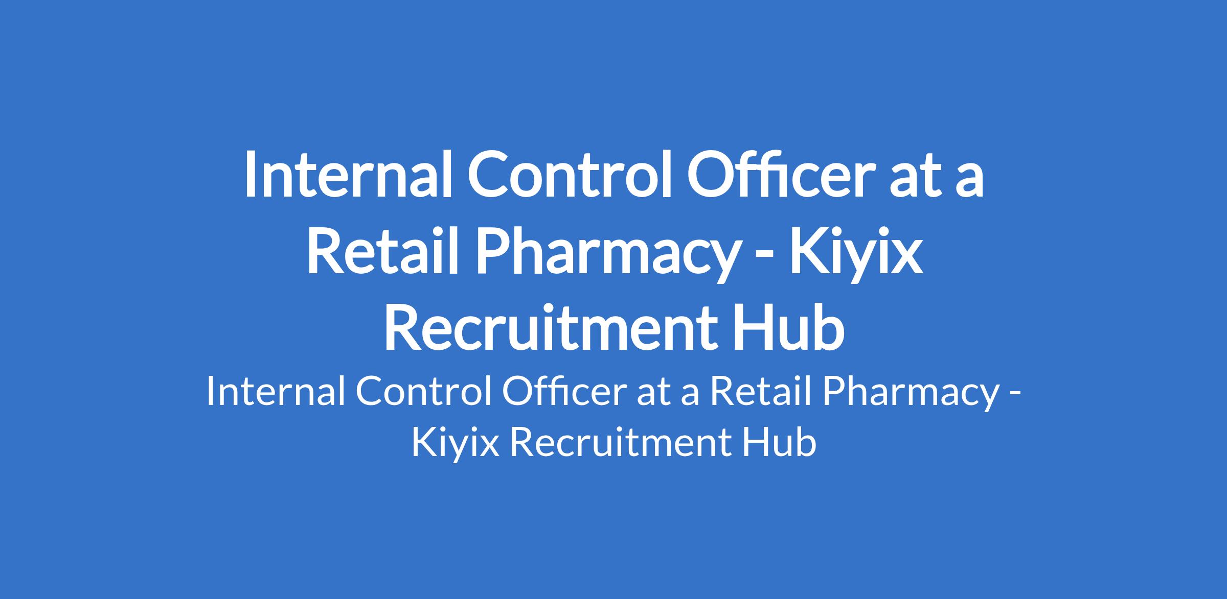 Kiyix Recruitment Hub - Our client, a retail Pharmacy is recruiting to fill the position of: Internal Control Officer. The position is located in Victoria Island, Lagos State. Salary: N200,000 Monthly. Interested candidates should possess a Bachelors Degree in Accounting, Finance, or related field with 23 years experience in internal control, audit, or finance (experience in retail/pharmacy is an added advantage).