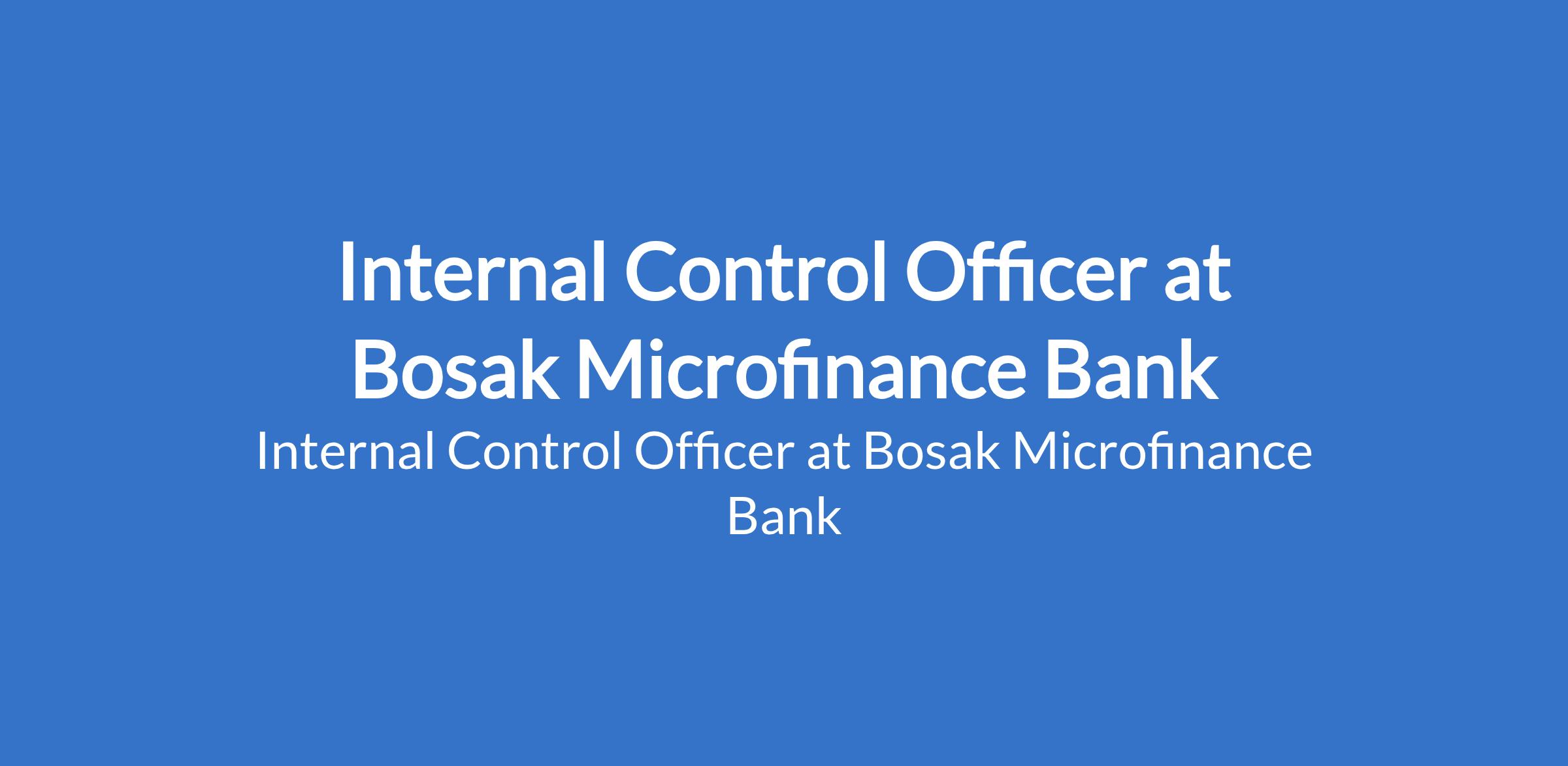 Internal Control Officer at Bosak Microfinance Bank