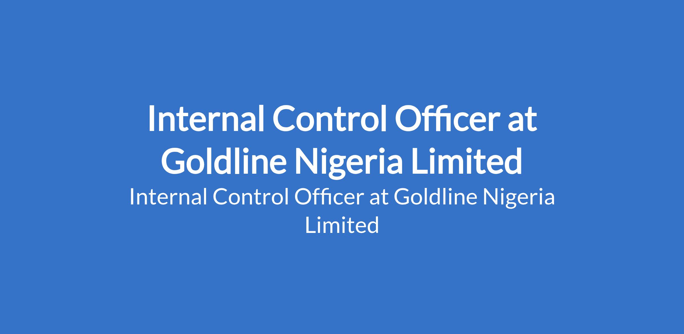 Goldline Nigeria Limited is recruiting to fill the position of: Internal Control Officer. The position is located in Ago Palace Way, Lagos State. Salary: N130,000 - N150,000 monthly. Interested candidates should possess a Bachelors Degree in Accounting, Finance, or a related field with experience with financial statements and financial analysis, and must reside within / around Ago Palace Way / Okota / Isolo axis for easy commute.