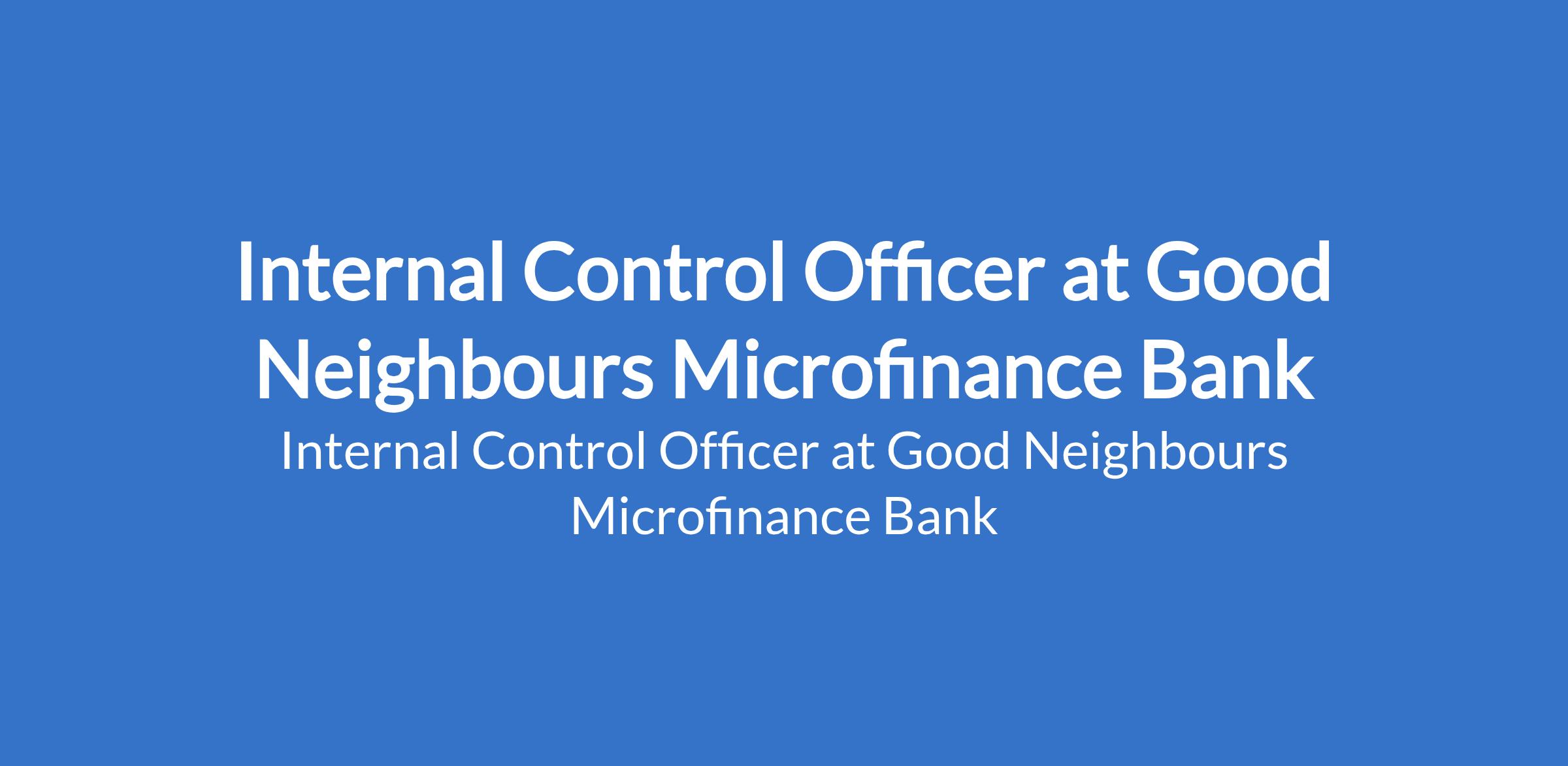 Good Neighbours Microfinance Bank is recruiting to fill the position of: Internal Control Officer. The position is located in Ikeja, Lagos State. Salary: N250,000 monthly. Interested candidates should possess an HND / BSc. Degree in Accountancy or a related field with 3 years of experience as an Internal Control Officer in a financial institution.