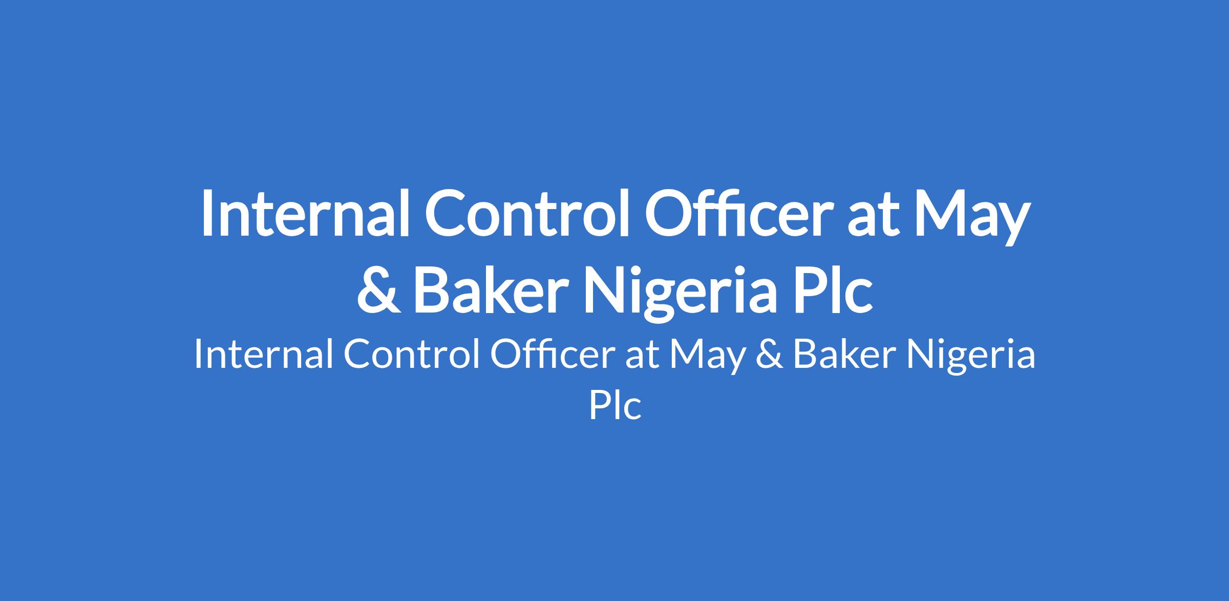 Internal Control Officer at May & Baker Nigeria Plc