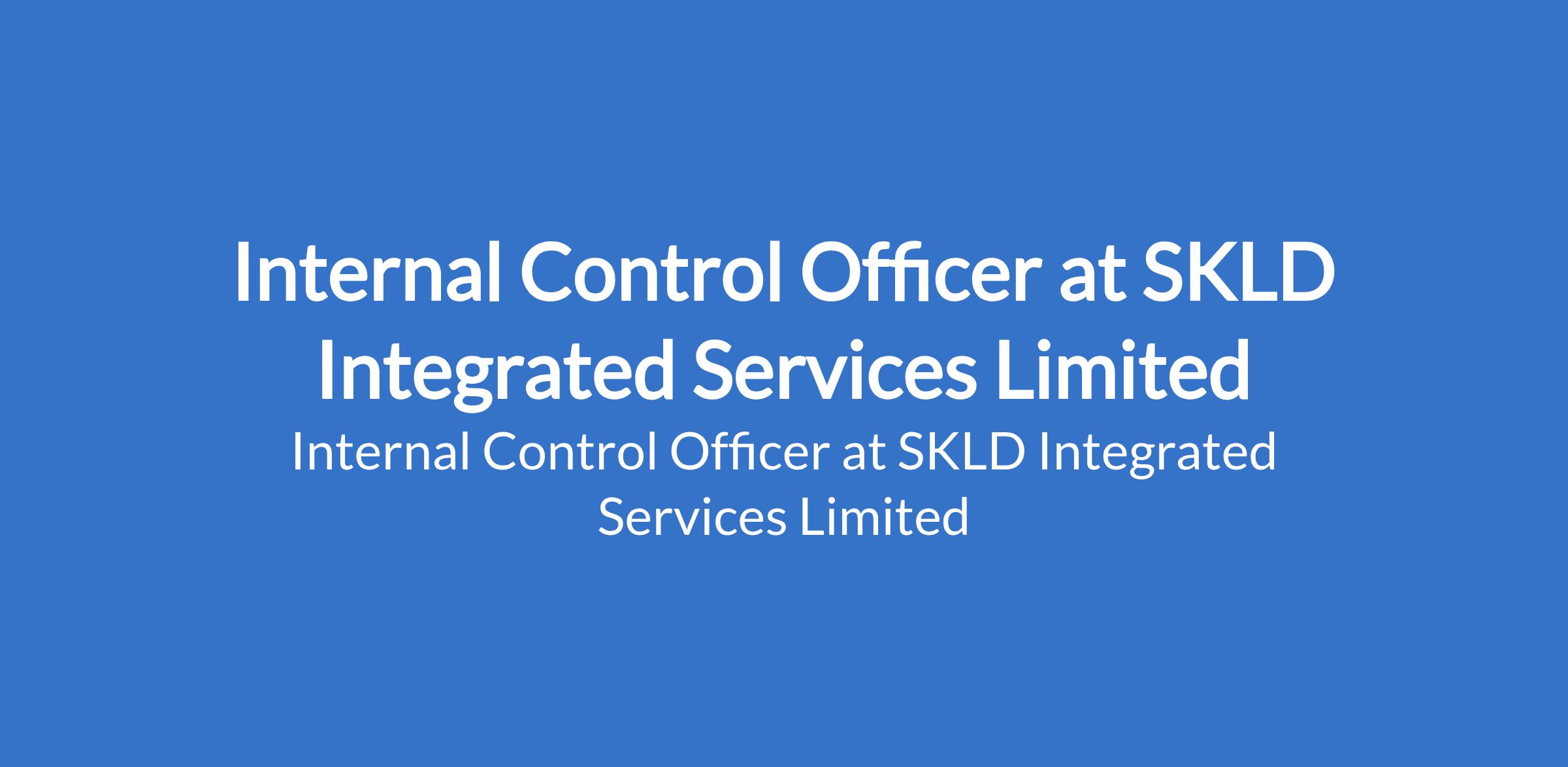 SKLD Integrated Services Limited is recruiting to fill the position of: Internal Control Officer. The position is located in Lagos State. Interested candidates should possess a Bachelor's Degree in Accounting, Finance, or related field with 24 years experience in internal control or audit.