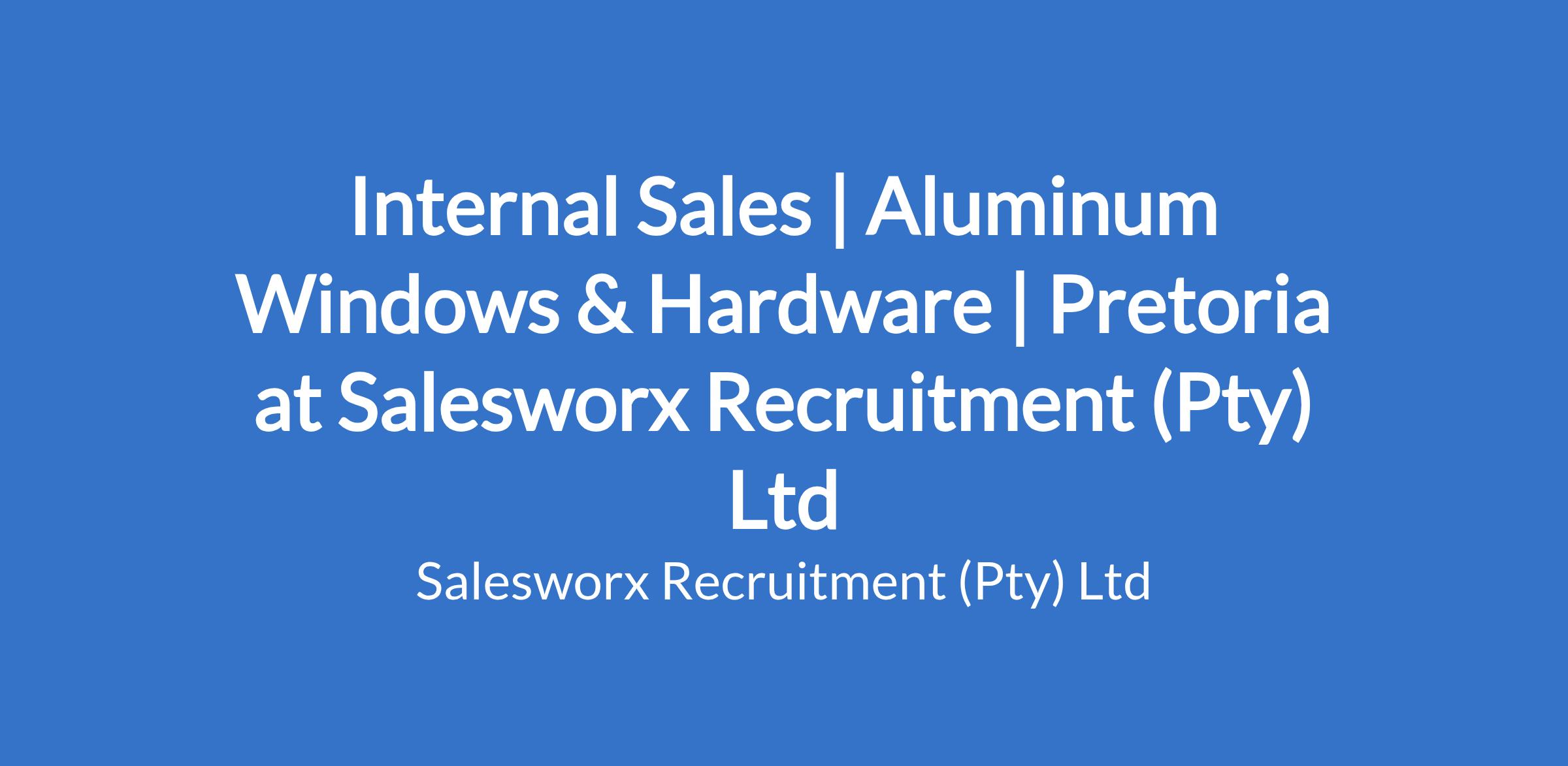 Our client in the Aluminium windows and doors hardware industry is looking for an Internal Salesperson to join their team in Pretoria.