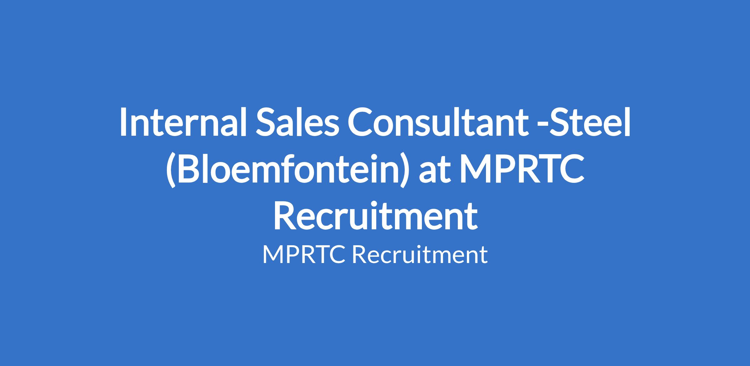 Internal Sales Consultant -Steel (Bloemfontein) at MPRTC Recruitment