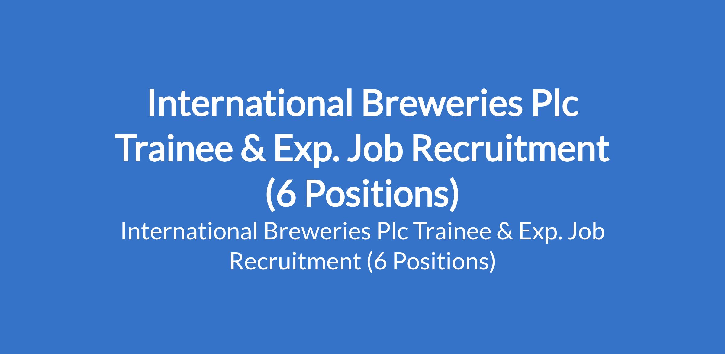 International Breweries Plc is currently seeking applications from suitably qualified candidates to fill the following trainee and experienced positions in Abuja, Rivers, Osun and Ogun States: Raw Materials Controller, Packaging; Maintenance Controller, Brewing Artisan; Trade Marketing Representative; Technical Trainee, Control and Automation; Packaging Process Artisan - Electrical; and Packaging Technical Trainee.