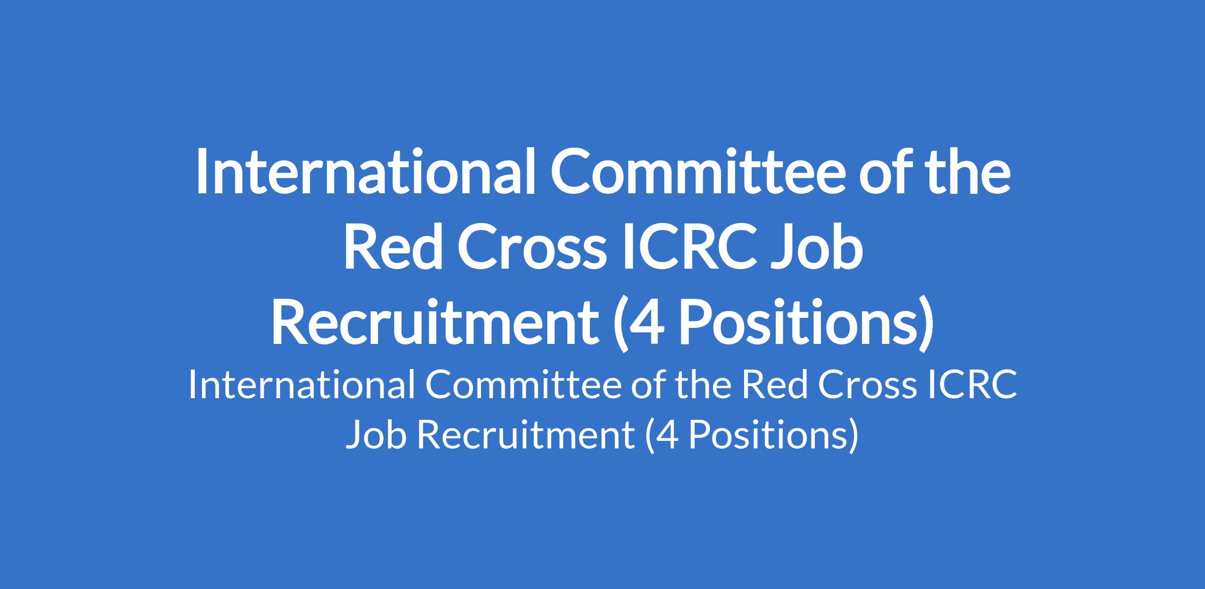 International Committee of the Red Cross (ICRC) is recruiting suitably qualified candidates to fill the following positions in Abuja (FCT), Borno, & Adamawa States: Health Field Officer 3, Generalist Field Officer 2, Communication Officer II,and Health Field Officer II.