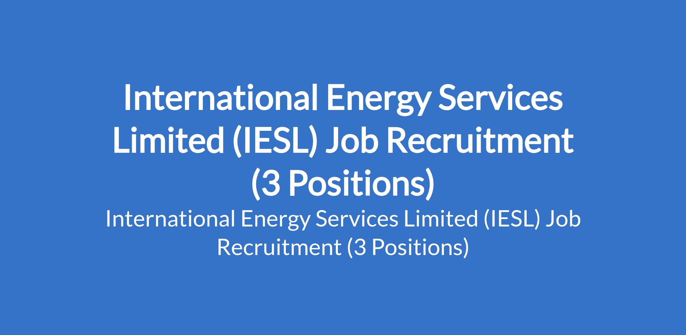 International Energy Services Limited (IESL) is recruiting suitably qualified candidates to fill the following positions in Delta and Lagos States: Principal Subsea CAD Engineer; Manager, Financial Intermediation and Tax Management; and Welding Engineer.