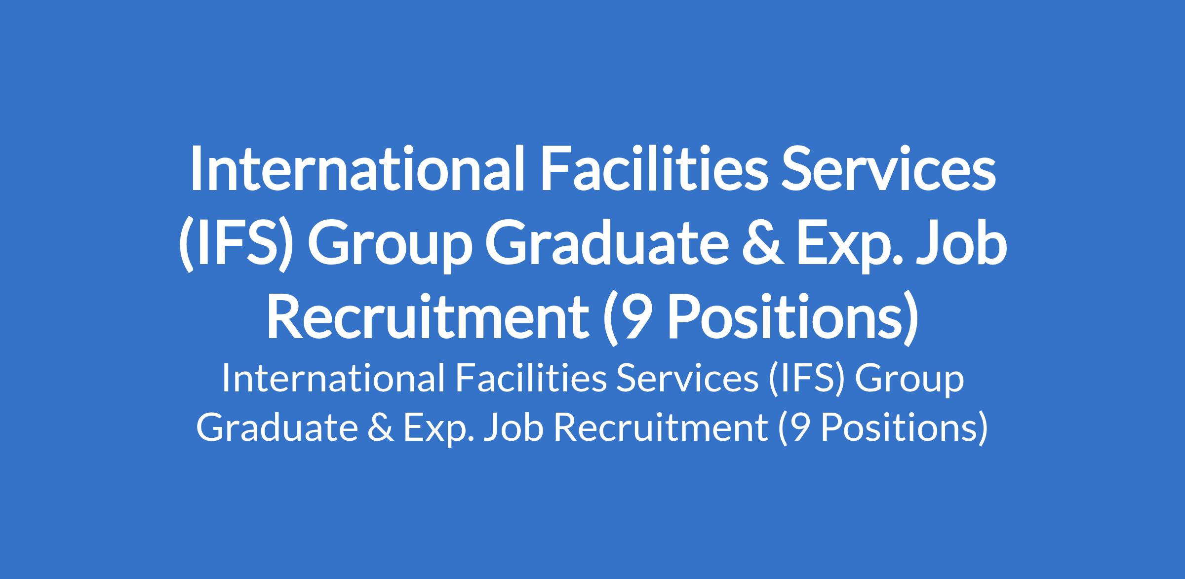 International Facilities Services (IFS) Group is currently recruiting suitably qualified candidates to fill the following graduate and Experienced positions in Abuja (FCT) and Lagos State: Business Growth Manager, NYSC Graduate Intern (Engineering, HR, Admin, Computer Science, Business Development, Accounting, Legal), Digital Designer and Visual Artist, Copywriter / Communications Strategist, Health Monitoring Assessment Officer, Power Engineer, Accountant, HR & Admin Manager, Spy Driver, and Estate Facility Manager.