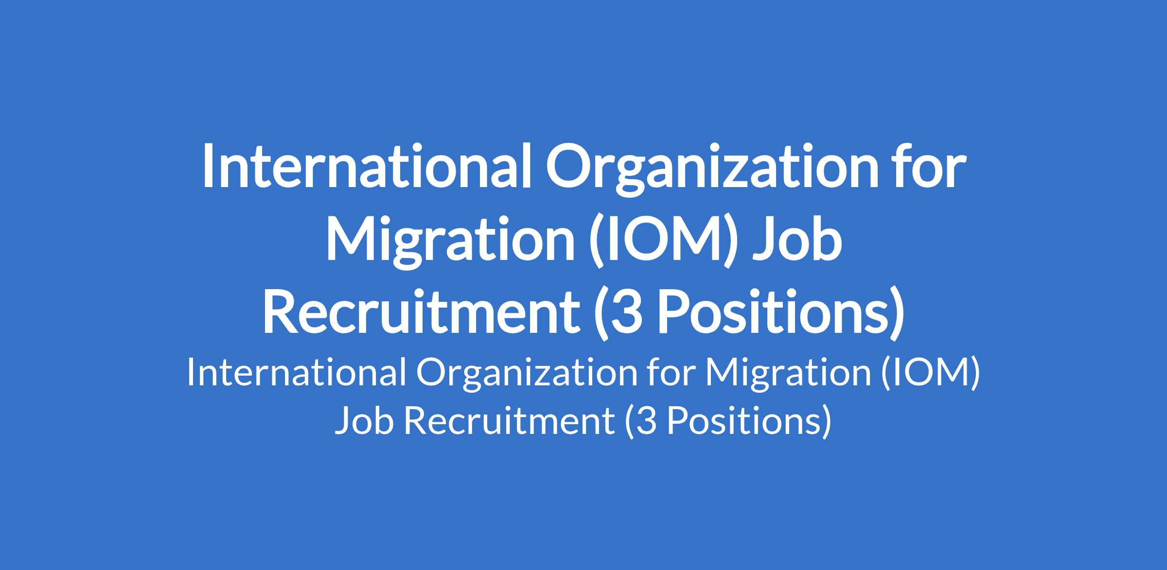 International Organization for Migration (IOM) Job Recruitment (3 Positions)
