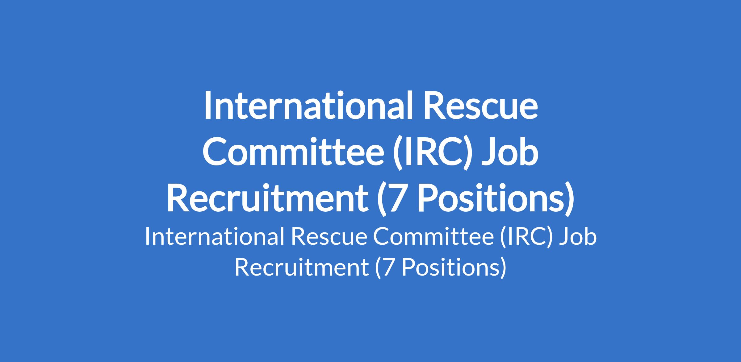 International Rescue Committee (IRC) is currently recruiting suitably qualified candidates to fill the following positions in Abuja and Borno State: Nutrition Nurse; Nutrition Officer; Nutrition MEAL Officer; EH WASH Infrastructure Officer; Finance Assistant; Cash Program Officer (Maiduguri); and Cash Program Officer (Monguno).