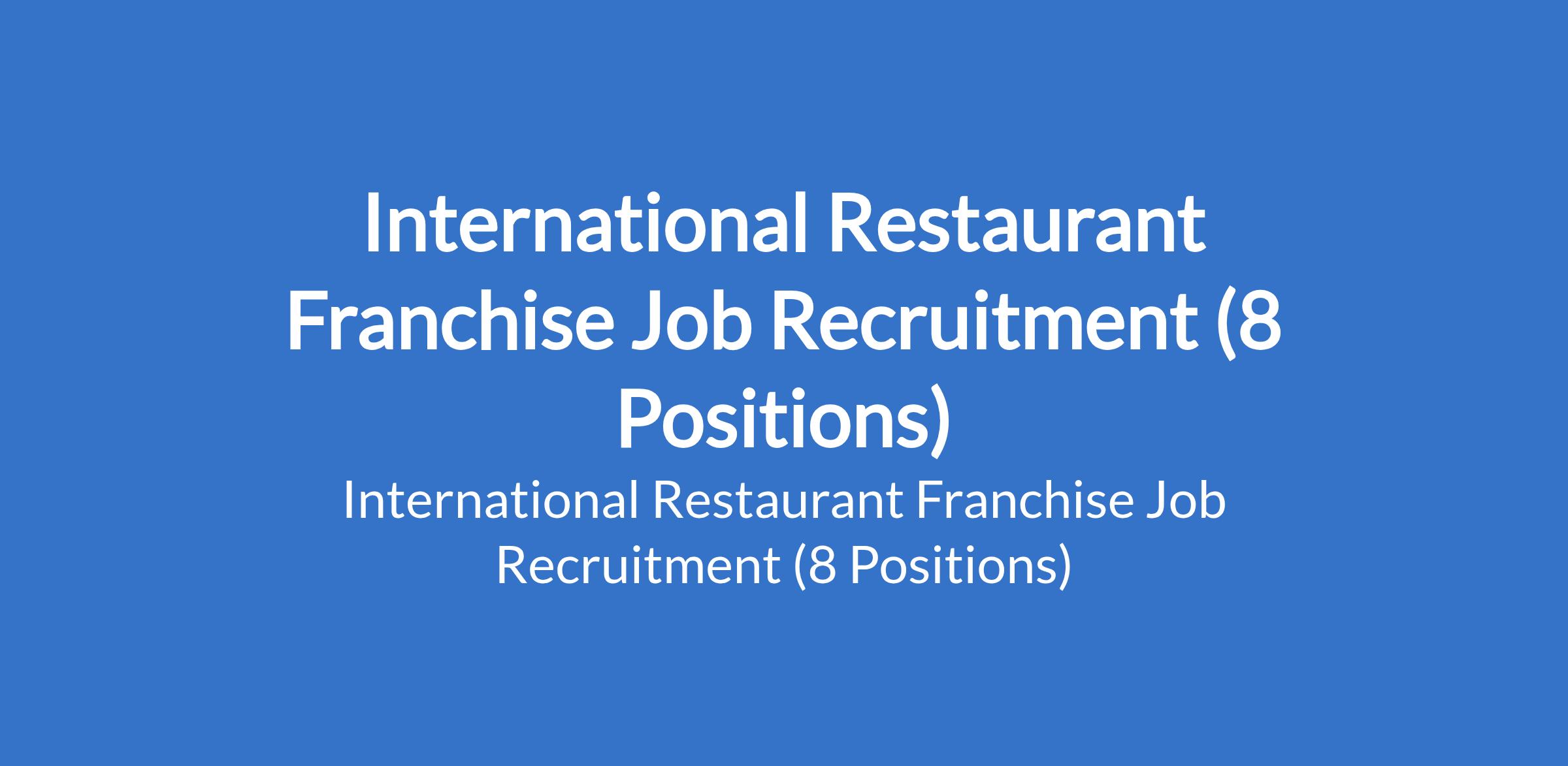 International Restaurant Franchise Job Recruitment (8 Positions)
