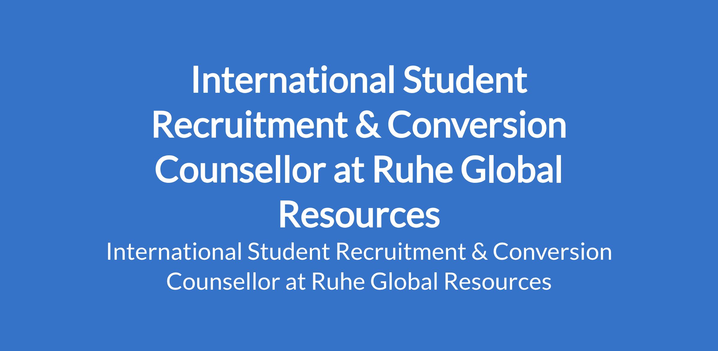 Ruhe Global Resources is recruiting to fill the position of: International Student Recruitment & Conversion Counsellor. The position is located in Abuja (FCT). Salary: N120,000 - N200,000 / Month. Interested candidates should possess a Bachelors or Masters Degree from a reputable university with 24 years experience in study abroad counselling (Canada & USA focus preferred).