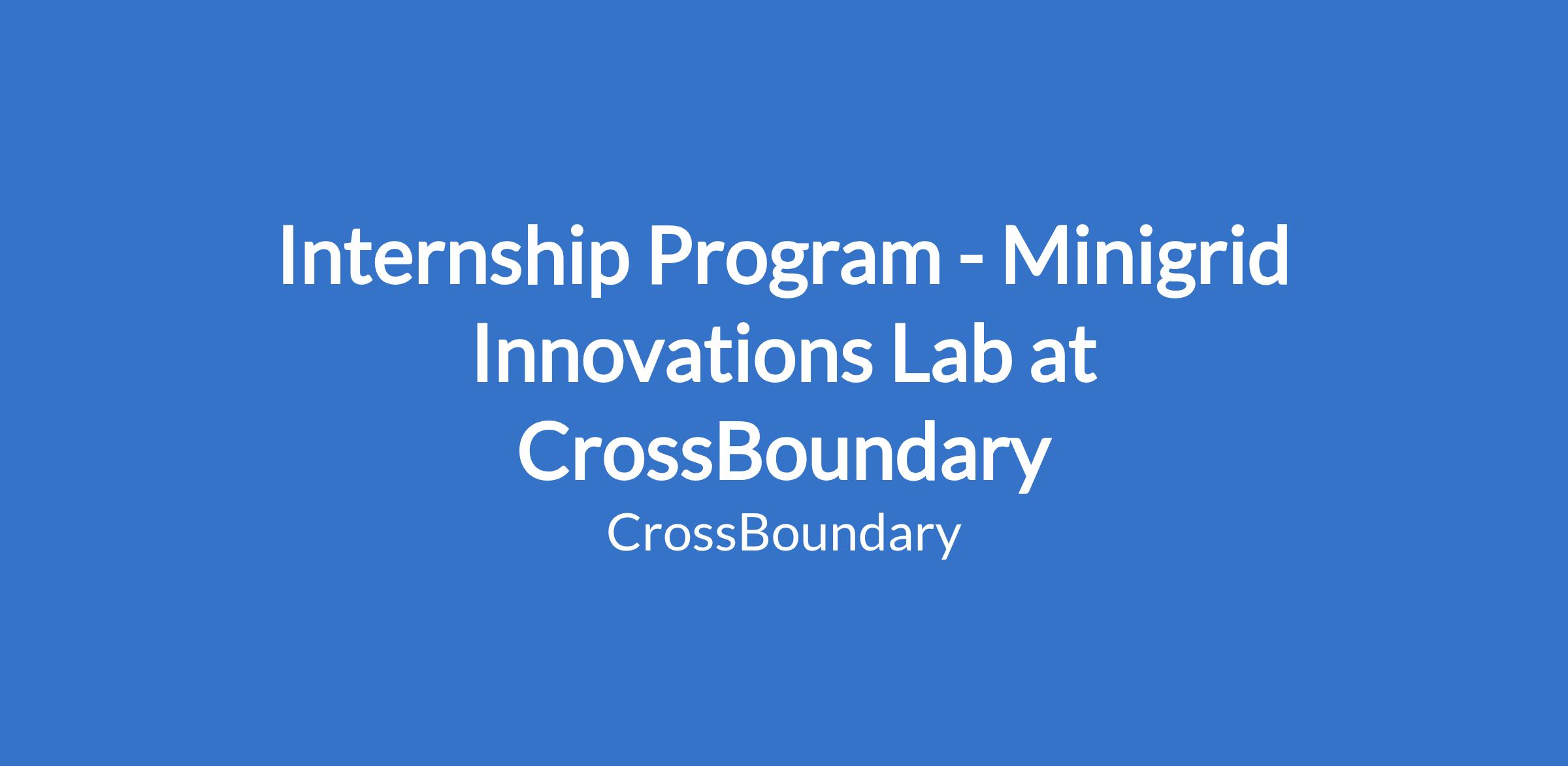 Internship Program - Minigrid Innovations Lab at CrossBoundary
