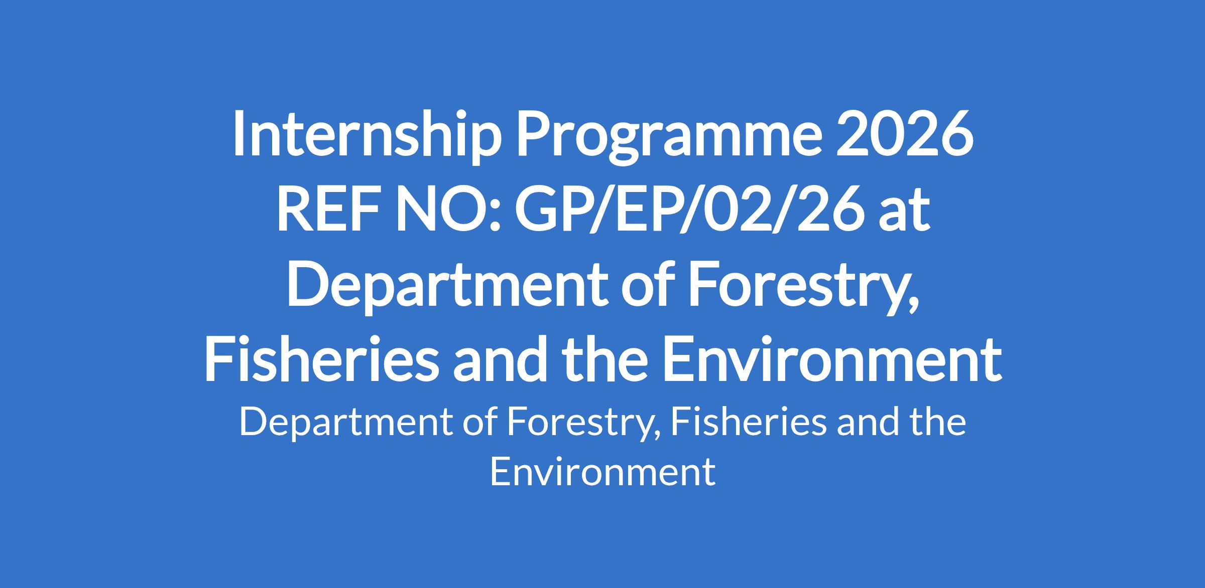 Internship Programme 2026 REF NO: GP/EP/02/26 at Department of Forestry, Fisheries and the Environment